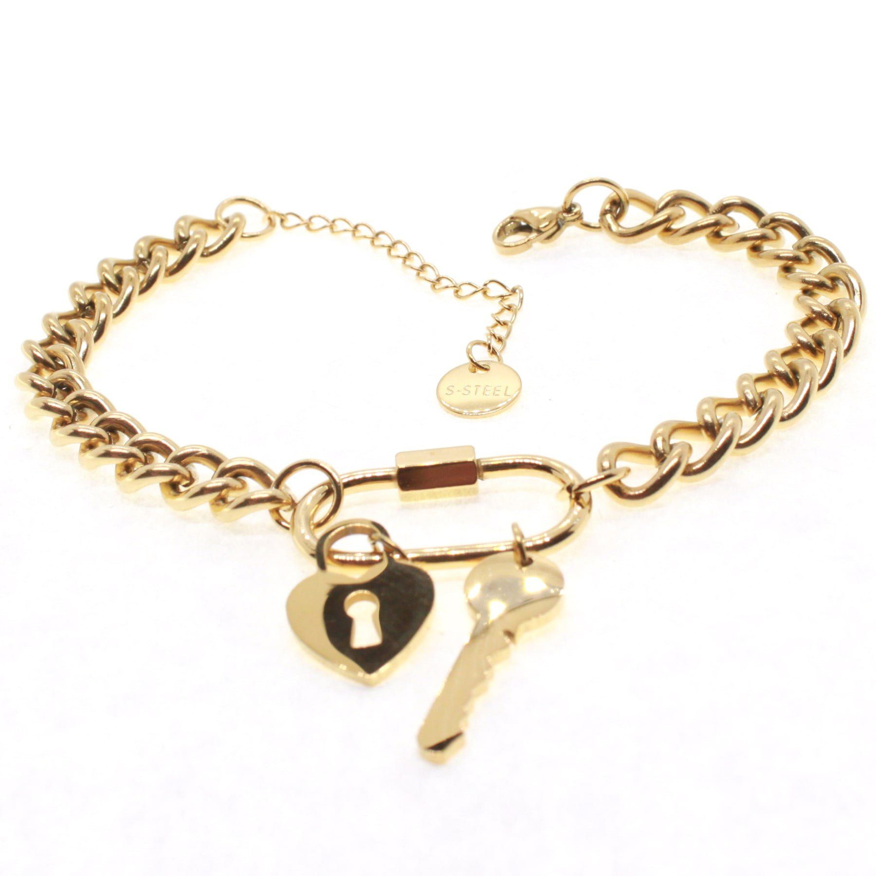 Toptan Altın Renk Kalp Anahtar Model Çelik Bileklik – 1637
