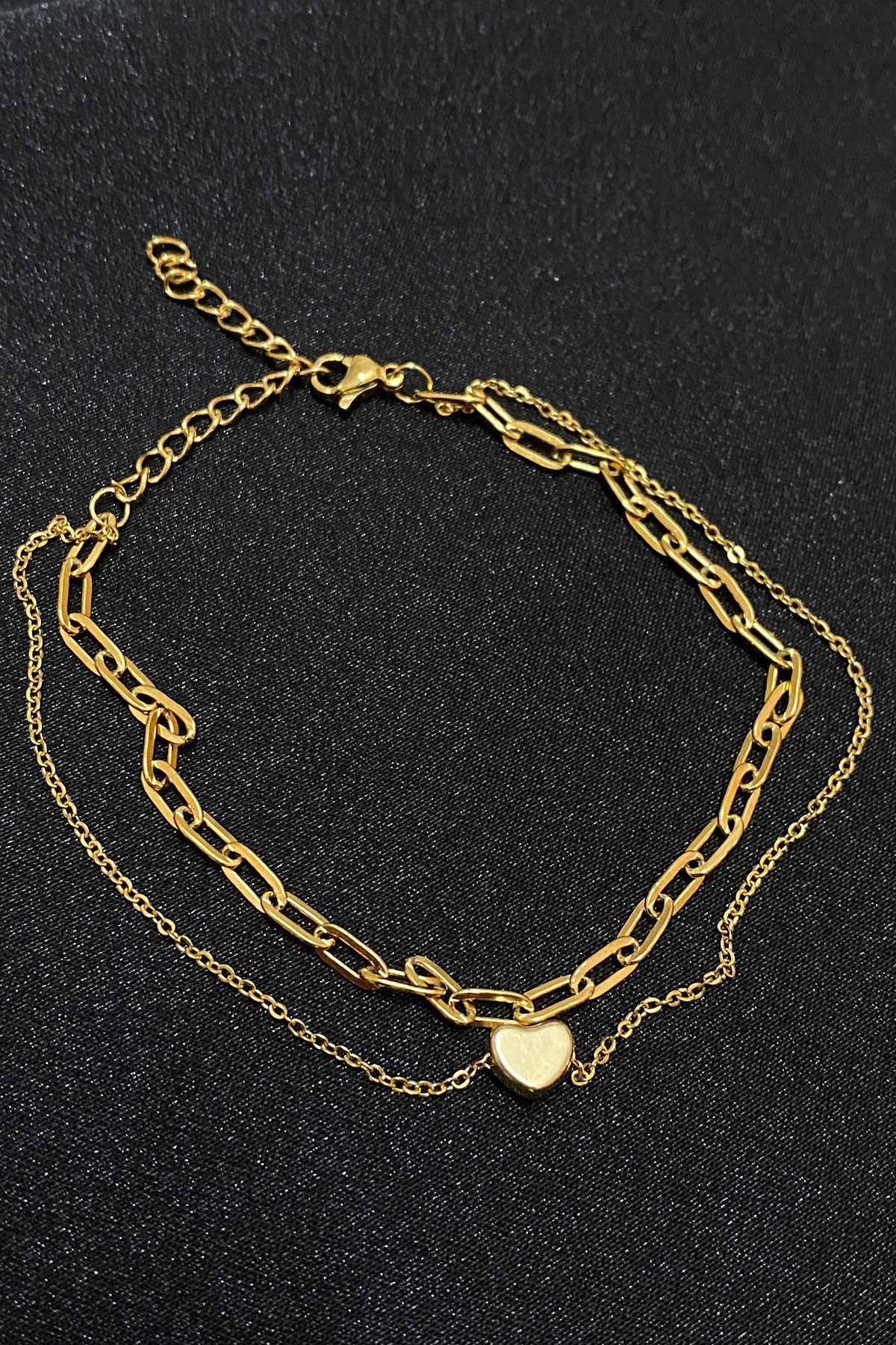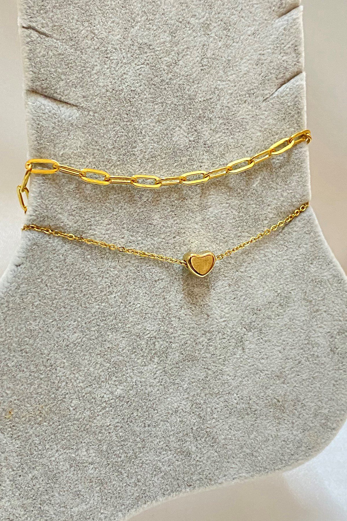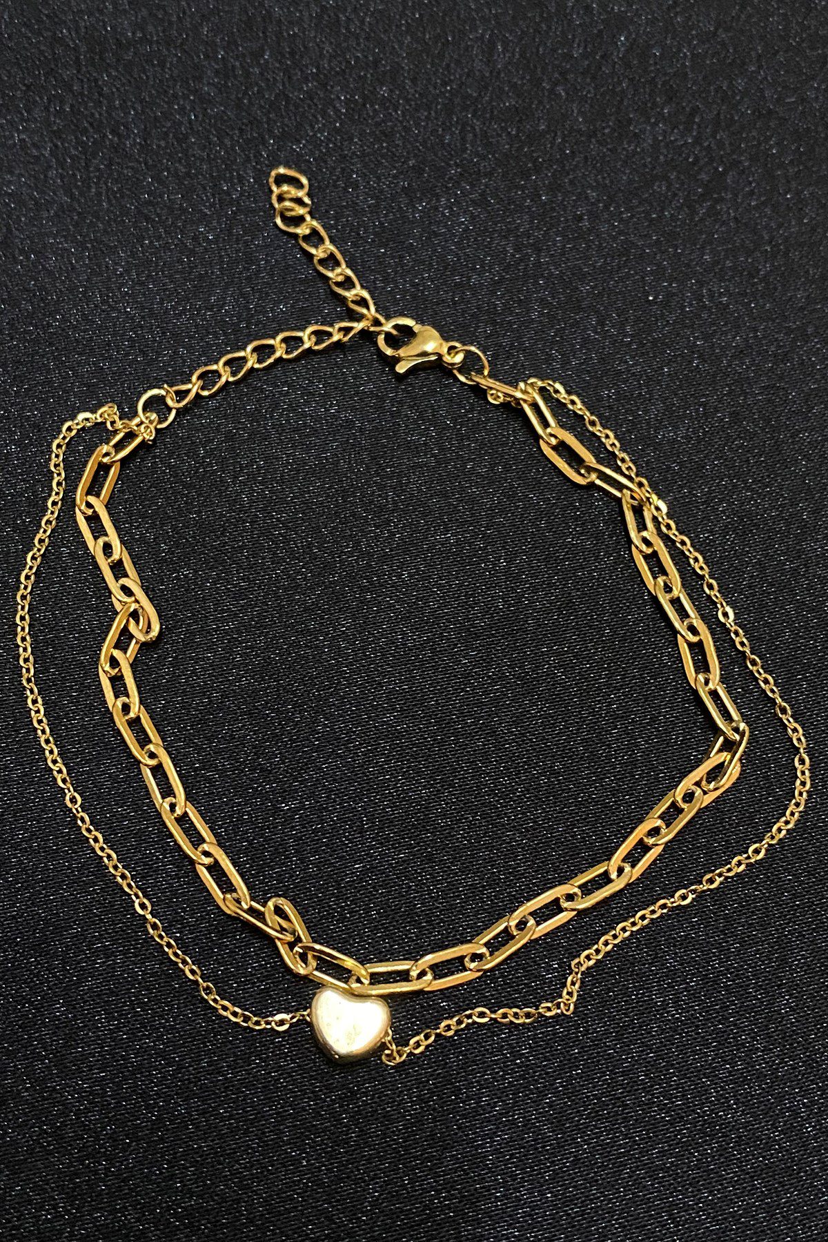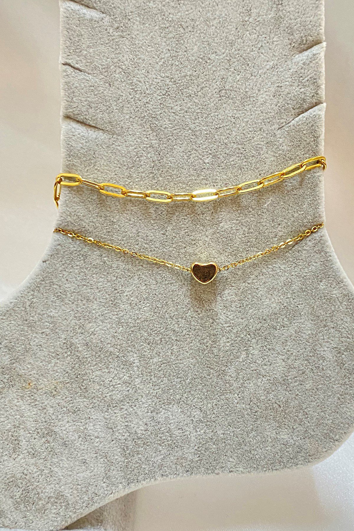 Toptan Altın Renk Kalp Model Ezme Ve Sf Zincir Çelik Halhal – 3300