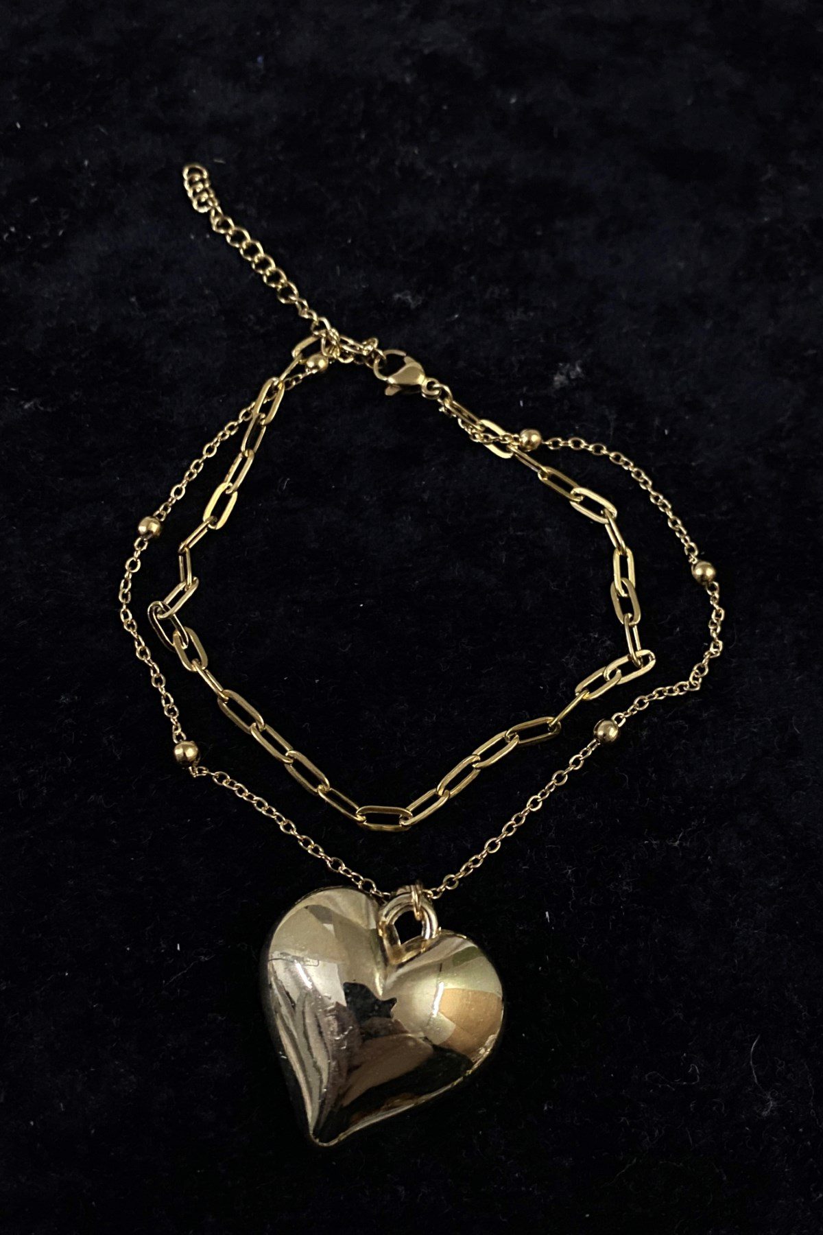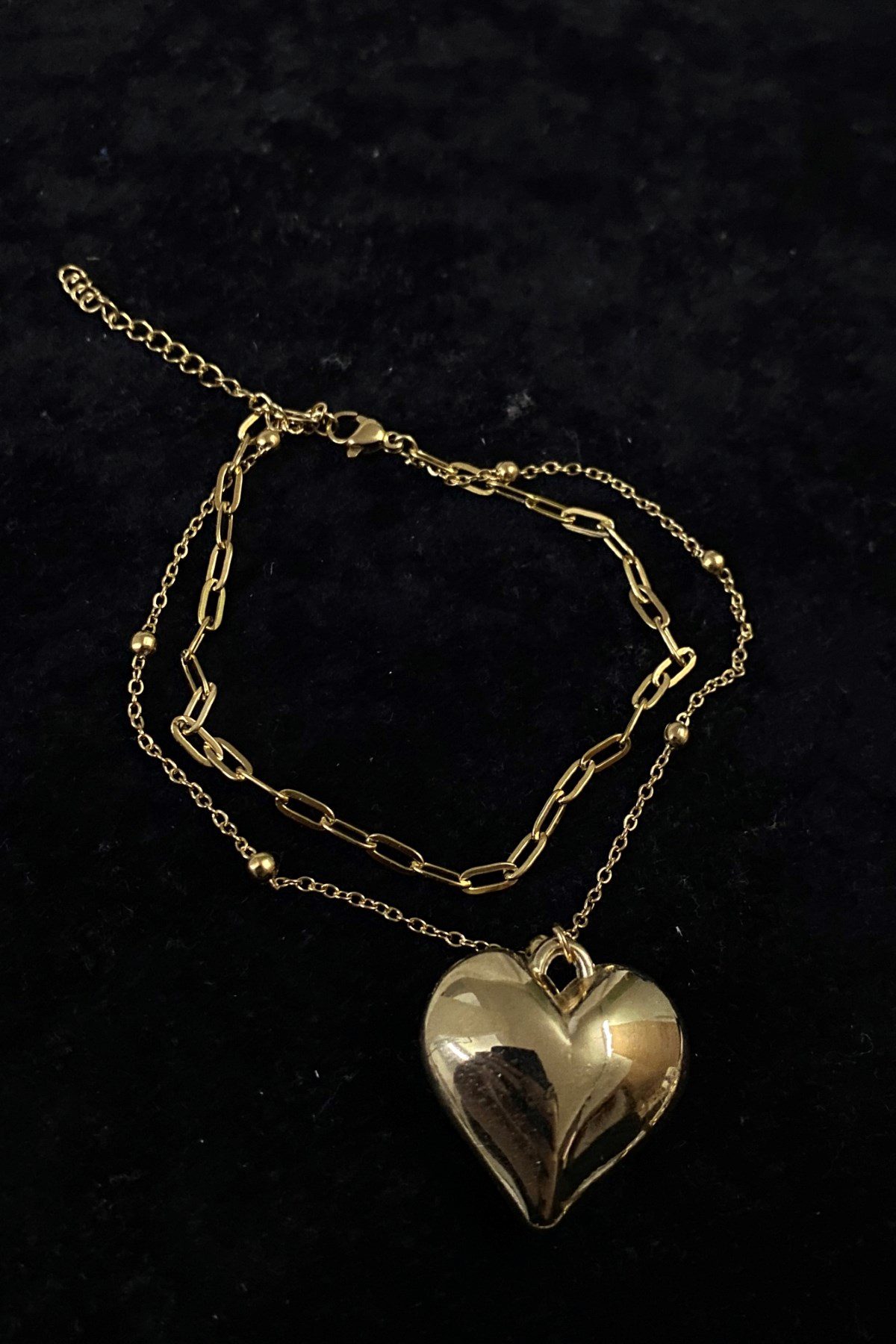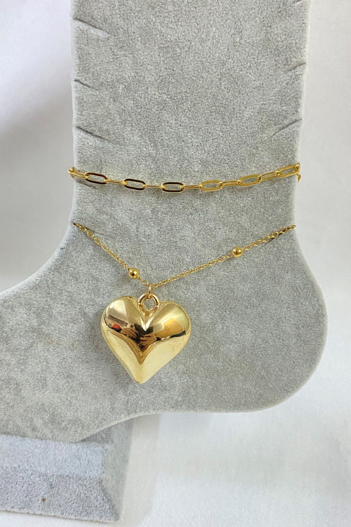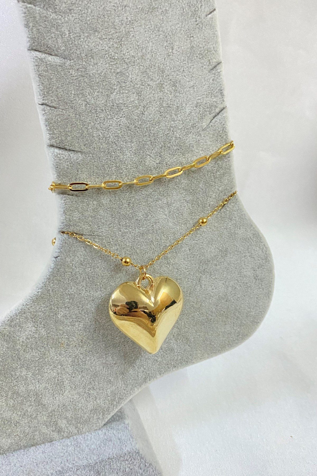 Toptan Altın Renk Kalp Model Ezme Ve Top Zincir Çelik Halhal – 3253
