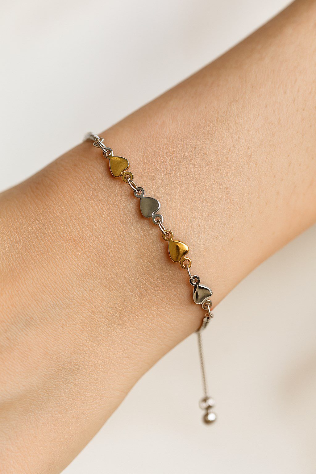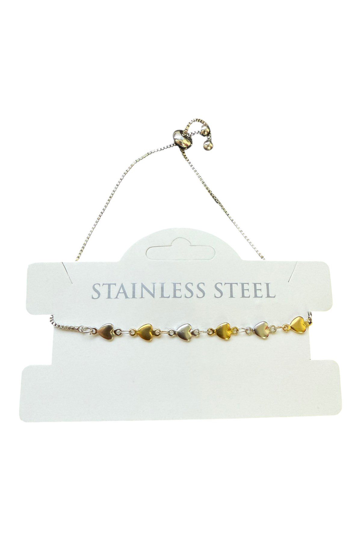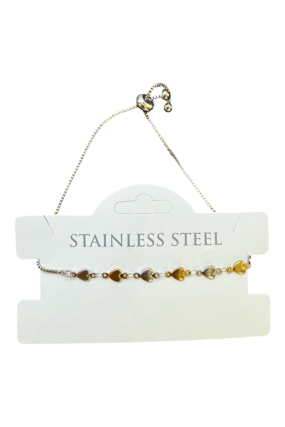 Toptan Gümüş Renk Kalp Sarı Beyaz Zincir Asansör Çelik Bileklik – 3586