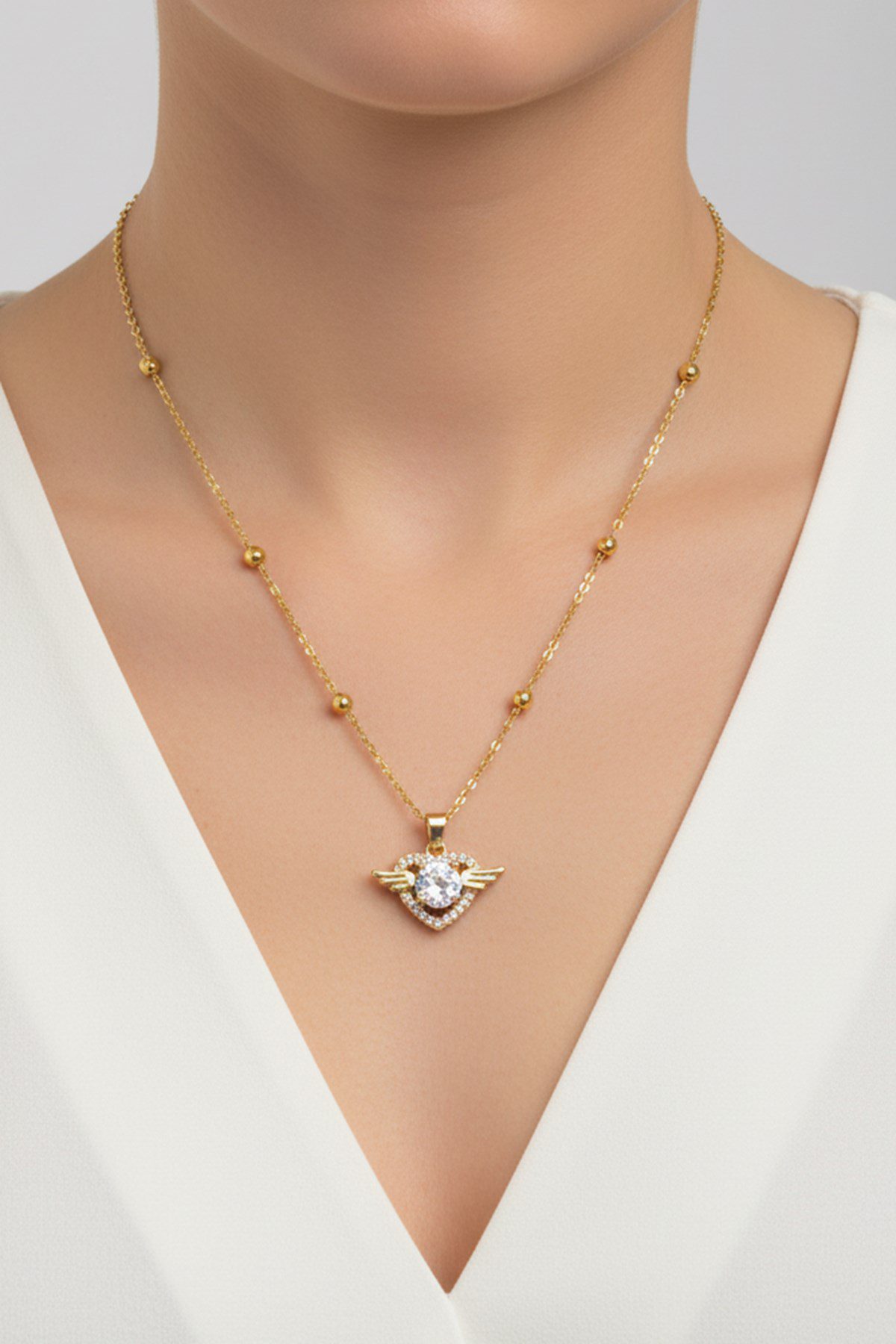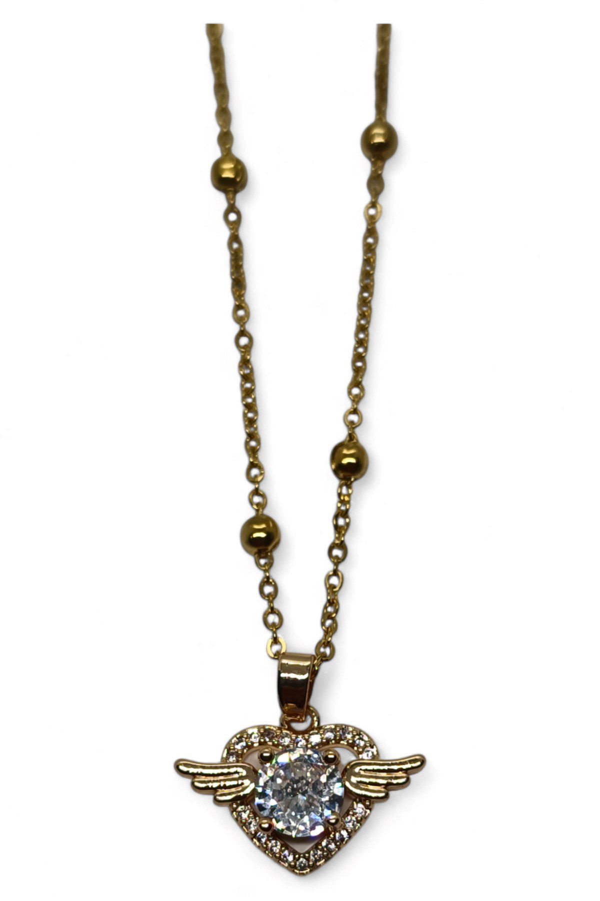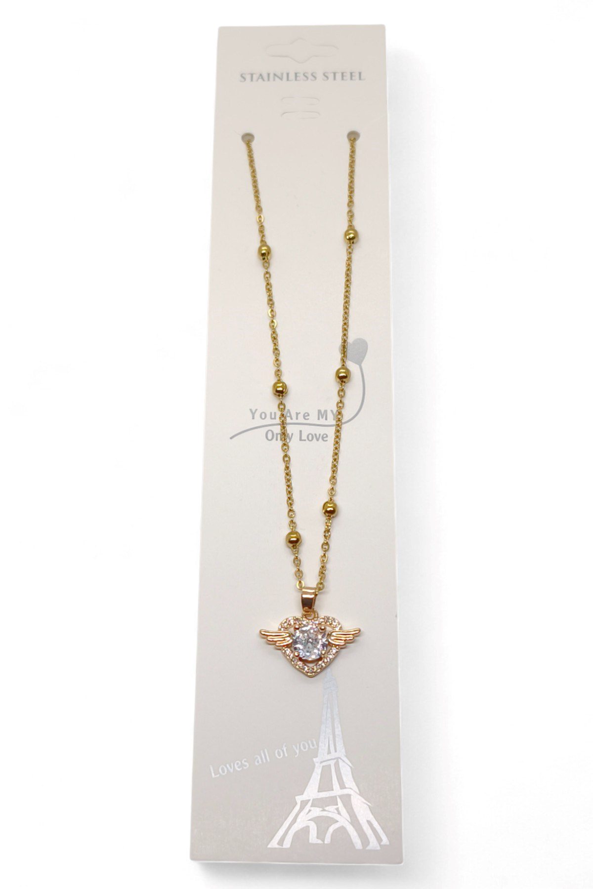 Toptan Altın Renk Kanat Kalp Model Top Zincir Çelik Kolye – 3681