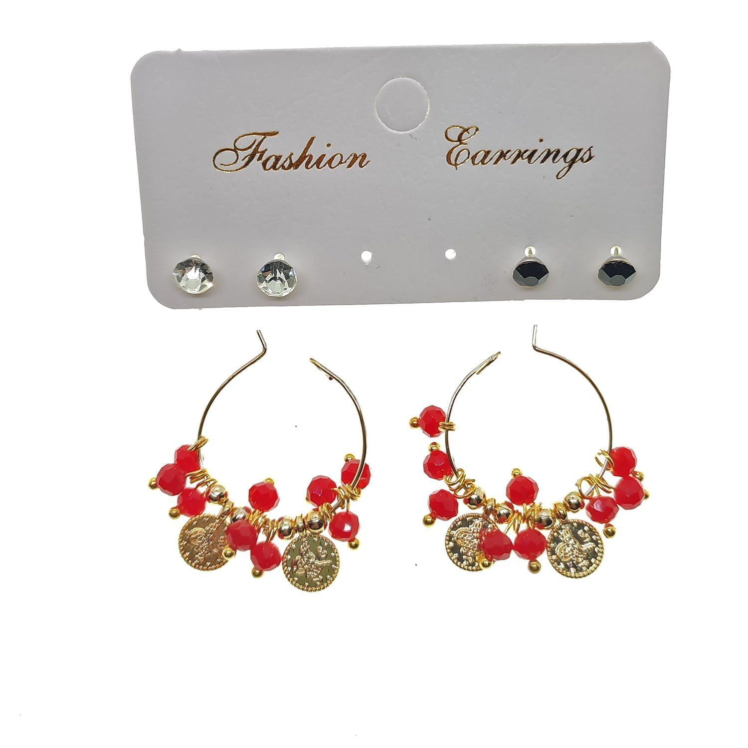 Toptan Altın Renk Kırmızı Boncuk Şık Sallantılı El İşi Kombin Küpe – 2244