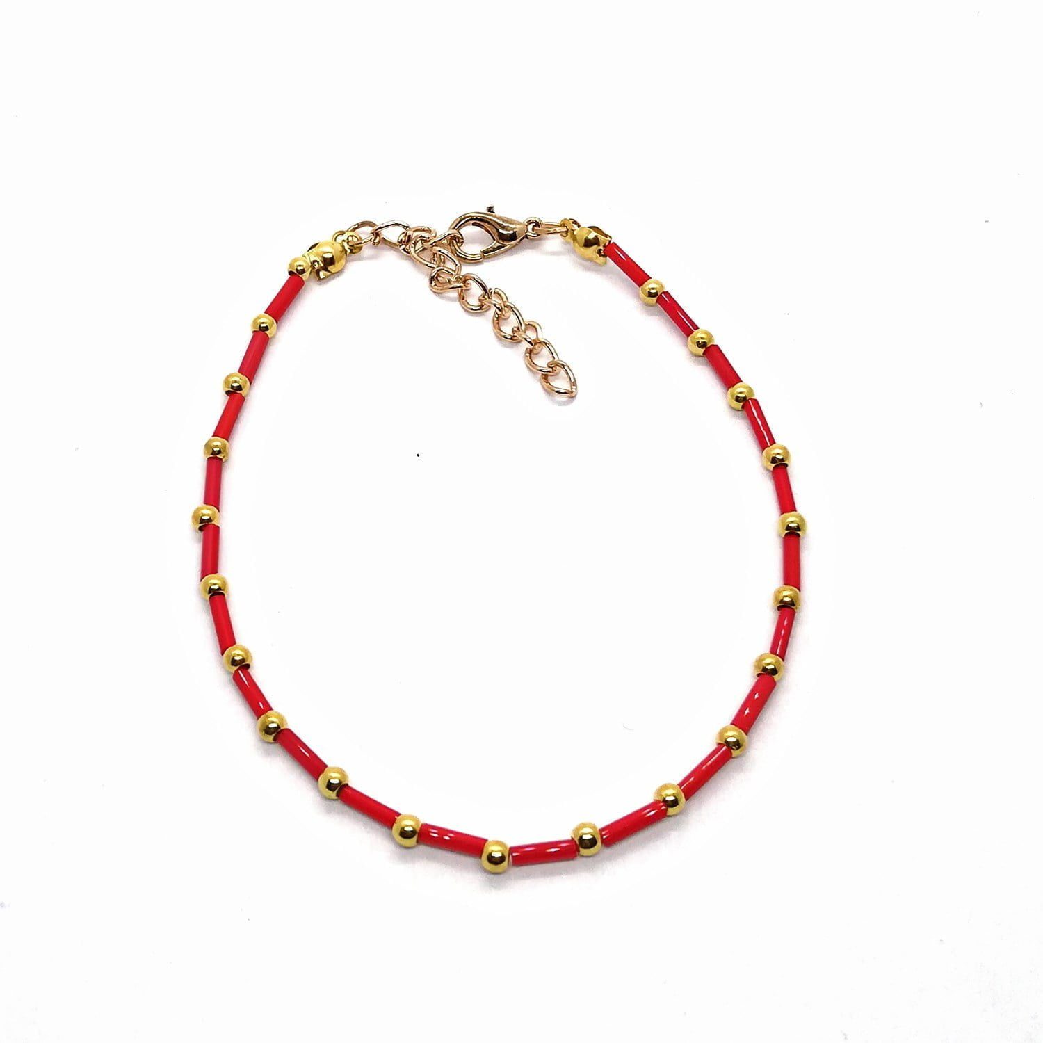 Toptan Altın Renk Kırmızı Boru Boncuk Halhal – 1185