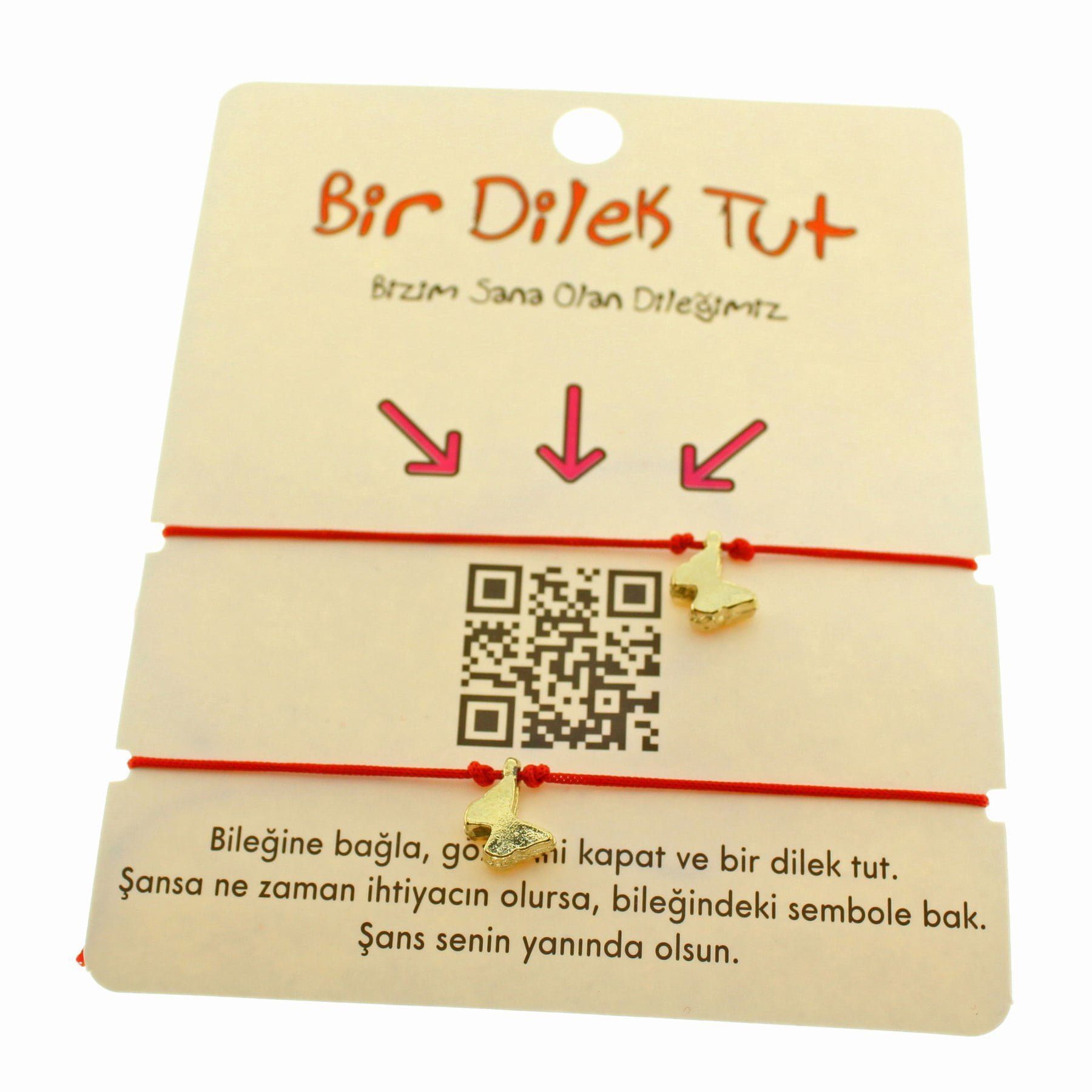 Toptan Altın Renk Kırmızı İp Kelebek Arkadaş Bilekliği – 1876