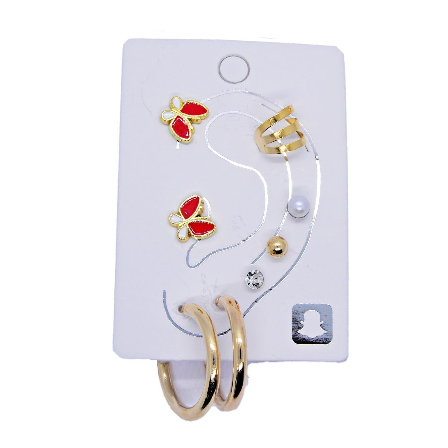 Toptan Altın Renk Kombin Küpe Kelebek Halka – 1031