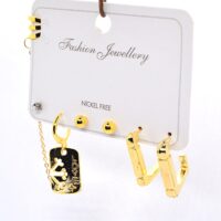 Toptan Altın Renk Kombin Küpe Love Yarım Kare – 1007