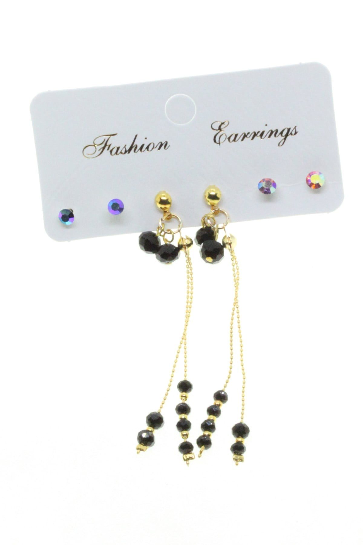 Toptan Altın Renk Kombin Siyah Boncuk Küpe – 2815