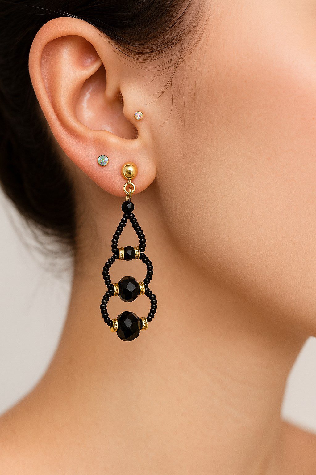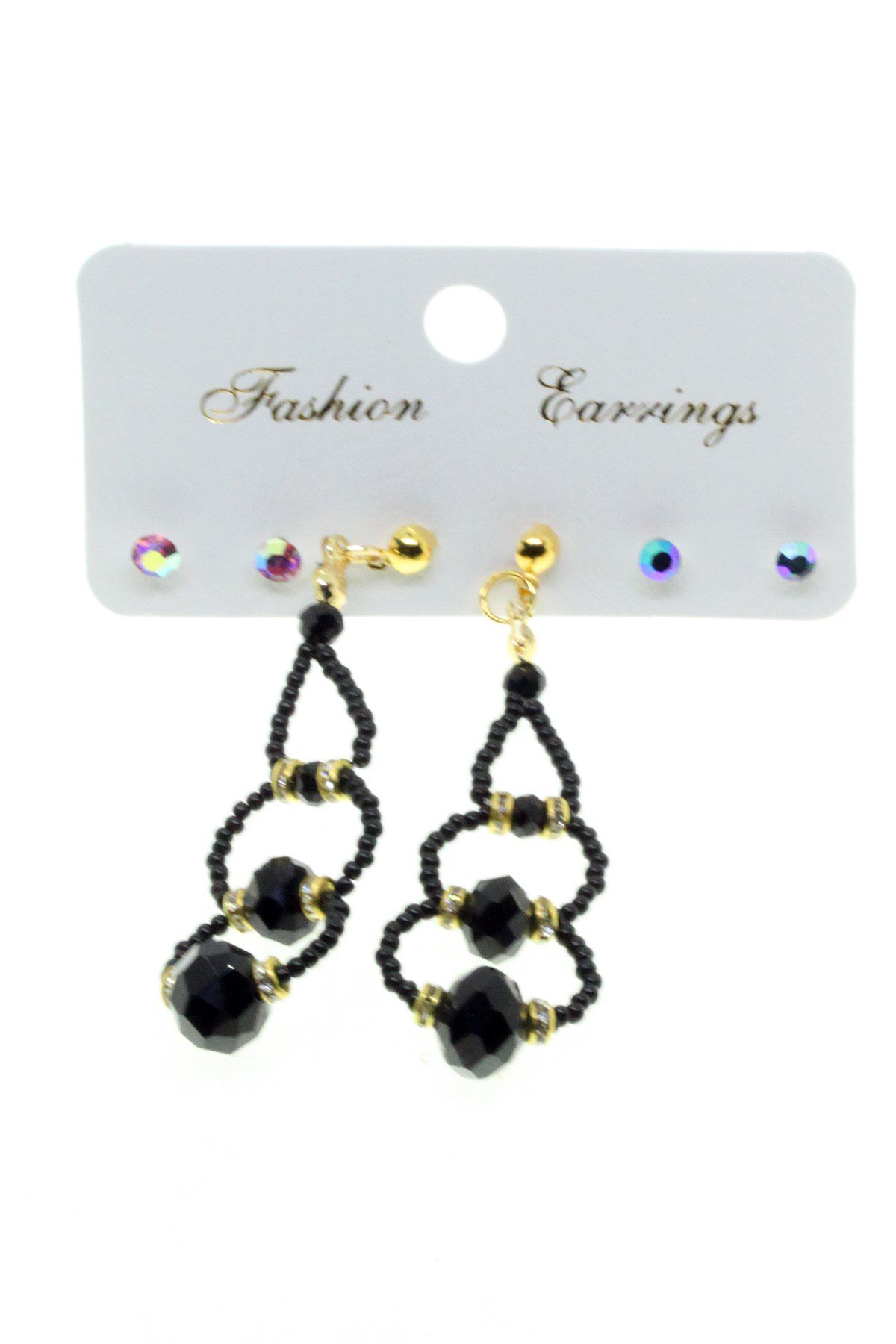 Toptan Altın Renk Kombin Üç Yuvarlaklı Siyah Boncuk Küpe – 2821