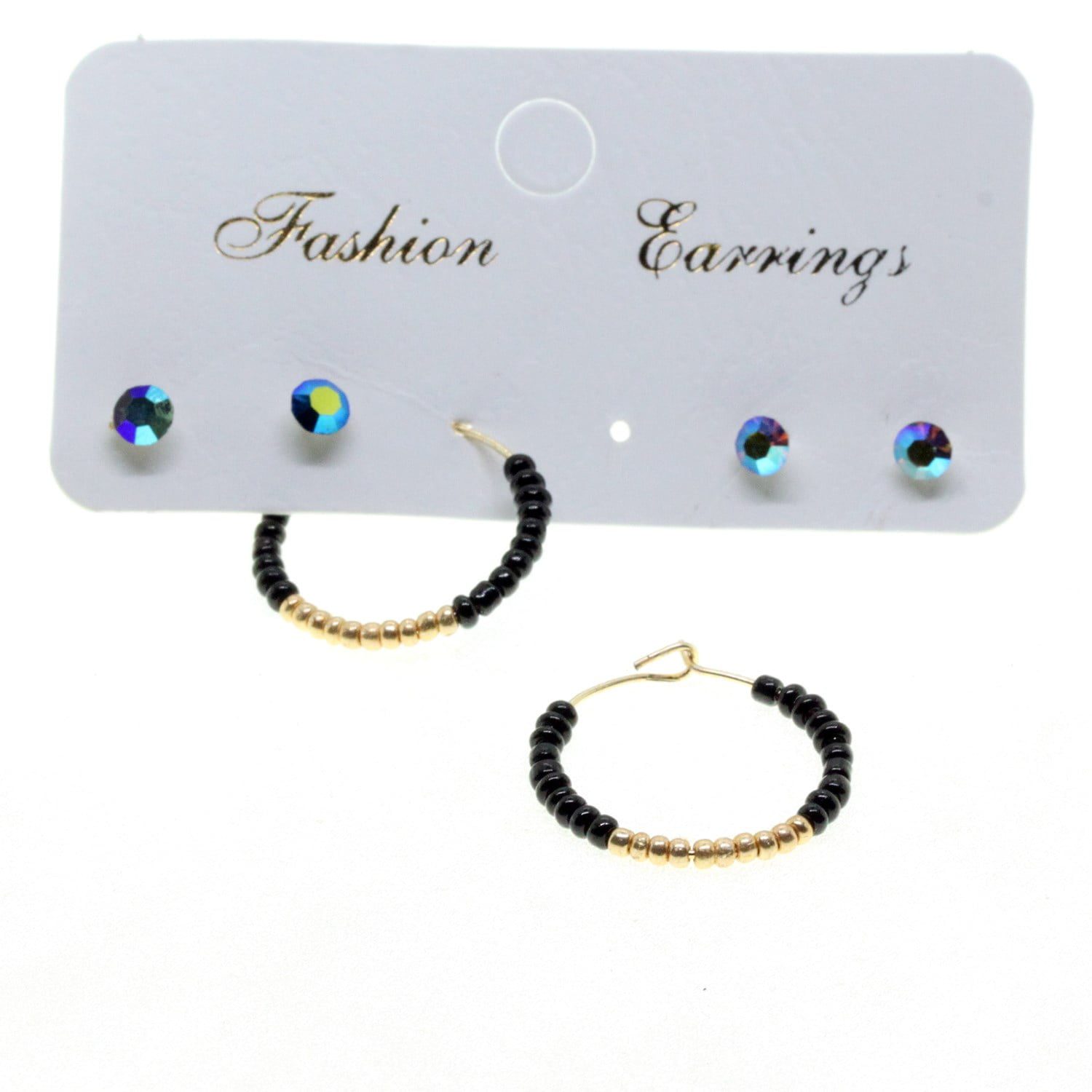Toptan Altın Renk Kombin Yuvarlak Siyah Boncuk Küpe – 2827