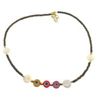 Toptan Altın Renk Kristal Cam Boncuk Karışık Yazlık Kolye – 2155