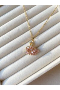 Toptan Altın Renk Kuğu Detaylı Minimal Zirkon Taşlı Zincir Paslanmaz Çelik Kolye – 3395