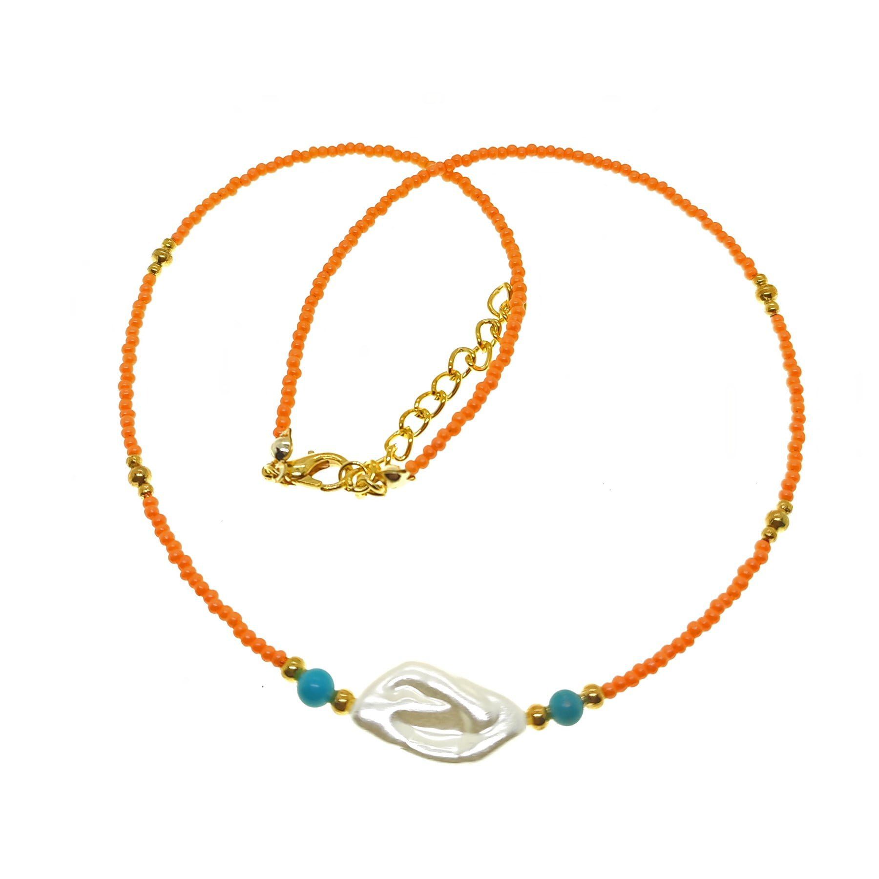 Toptan Altın Renk Kum Boncuk Karışık Yazlık Kolye – 2156