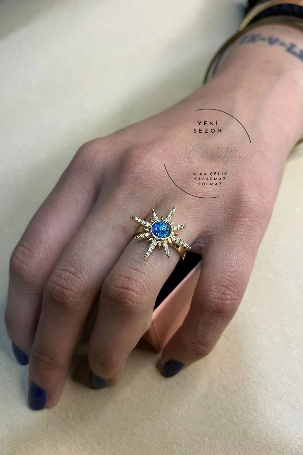 Toptan Altın Renk Kutup Yıldızı Gezegen Zirkon Çelik Ayarlanabilir Vip Solmaz Kararmaz Çelik Yüzük – 3078