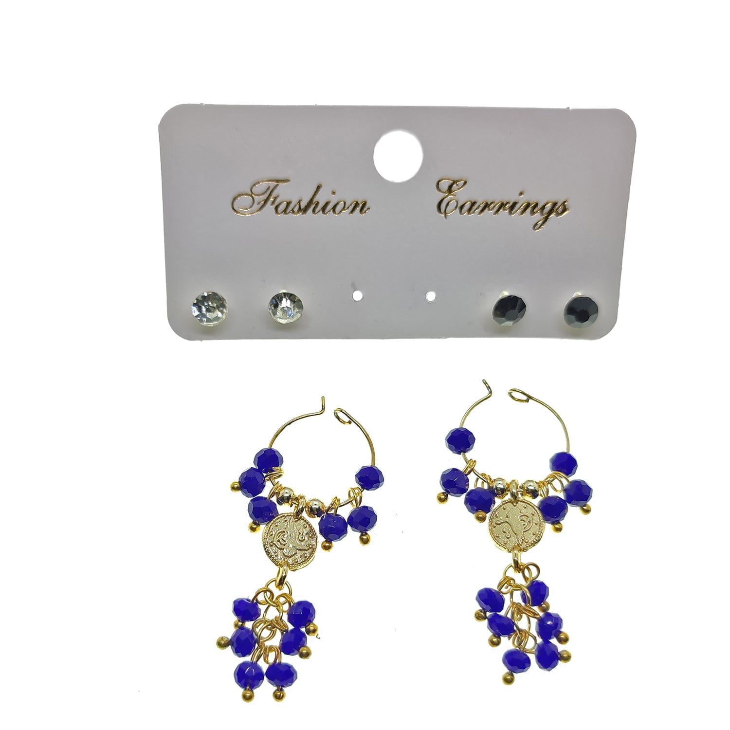 Toptan Altın Renk Mavi Boncuk Şık Sallantılı El İşi Kombin Küpe – 2230