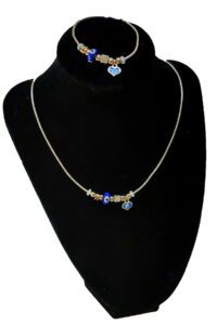 Toptan Altın Renk Mavi Mineli Kalp Kolye Ve Bileklik Pandora Kombin Zirkon Set Takım – 2787