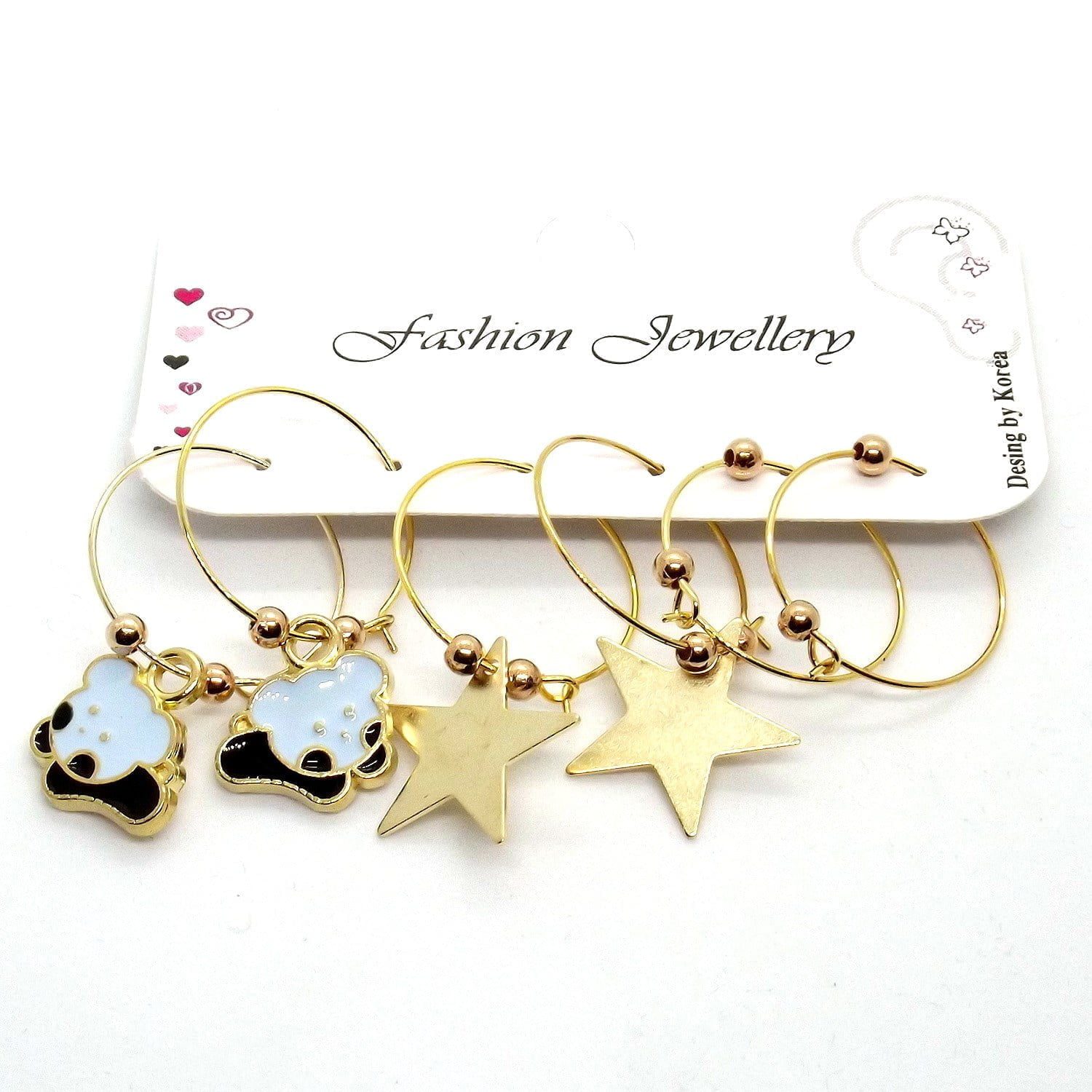 Toptan Altın Renk Mavi Mineli Panda Figurlu Kombin Küpe 653