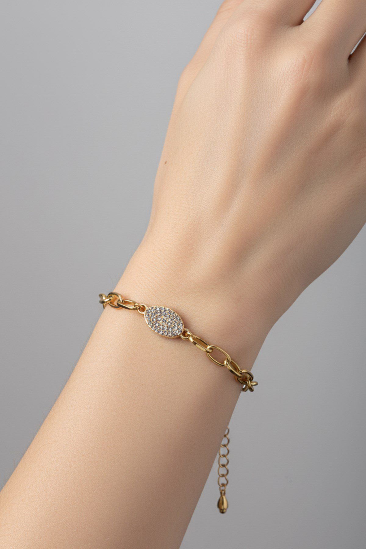 Toptan Altın Renk Mekik Beyaz Model Dd Zincir Çelik Bileklik – 3671