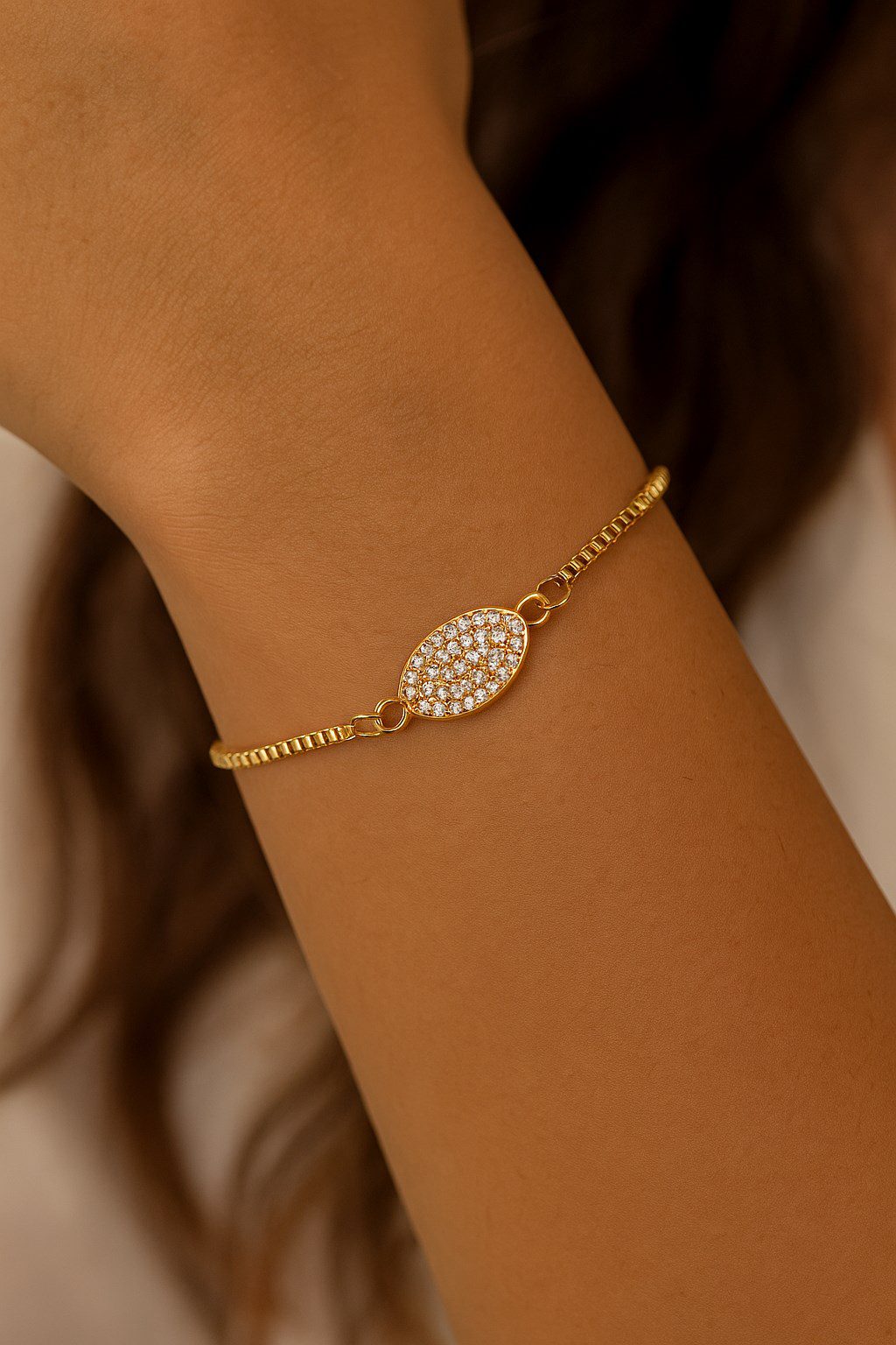 Toptan Altın Renk Mekik Model Beyaz Taş Asansör Çelik Bileklik – 3583