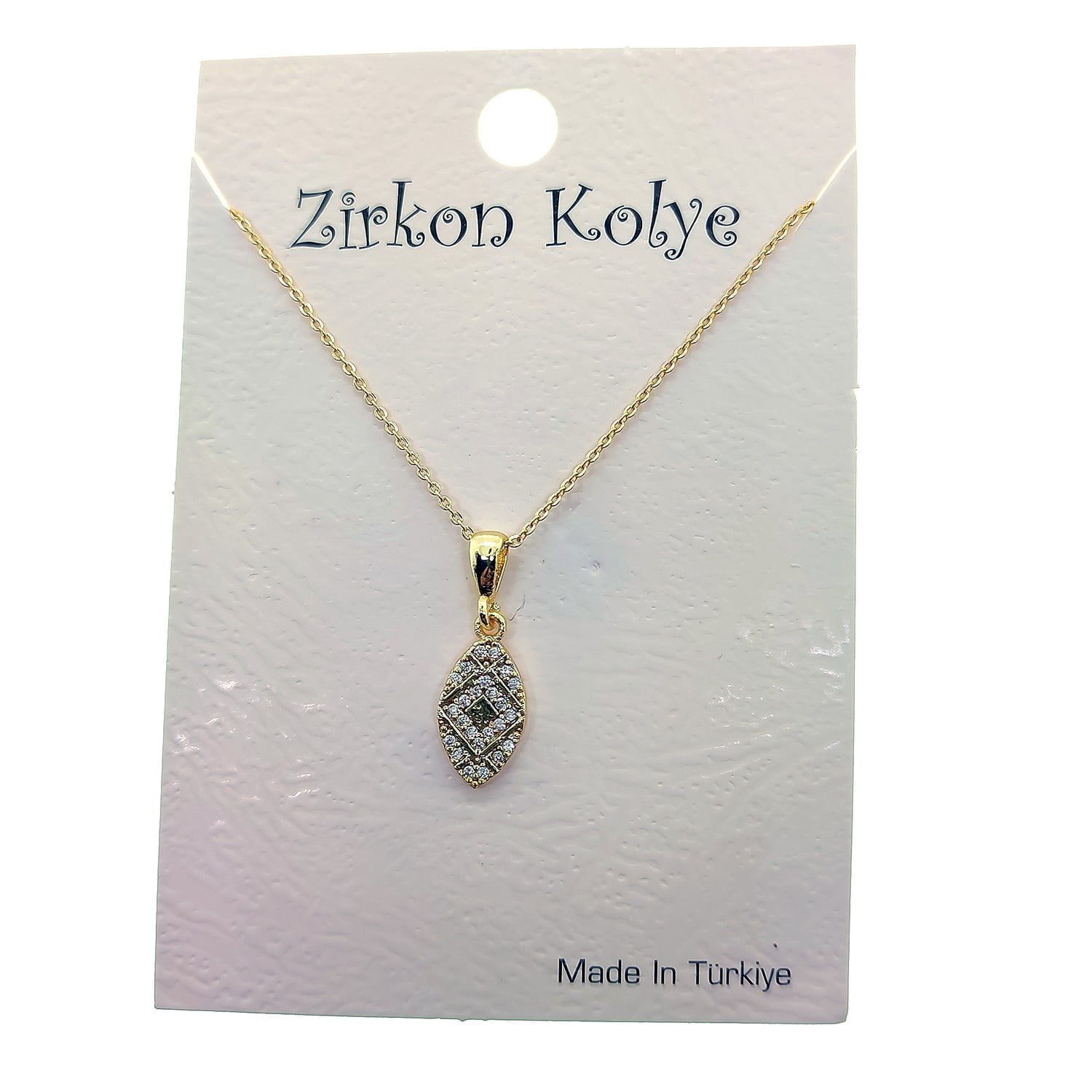 Toptan Altın Renk Mekik Model Zirkon Kolye – 2741