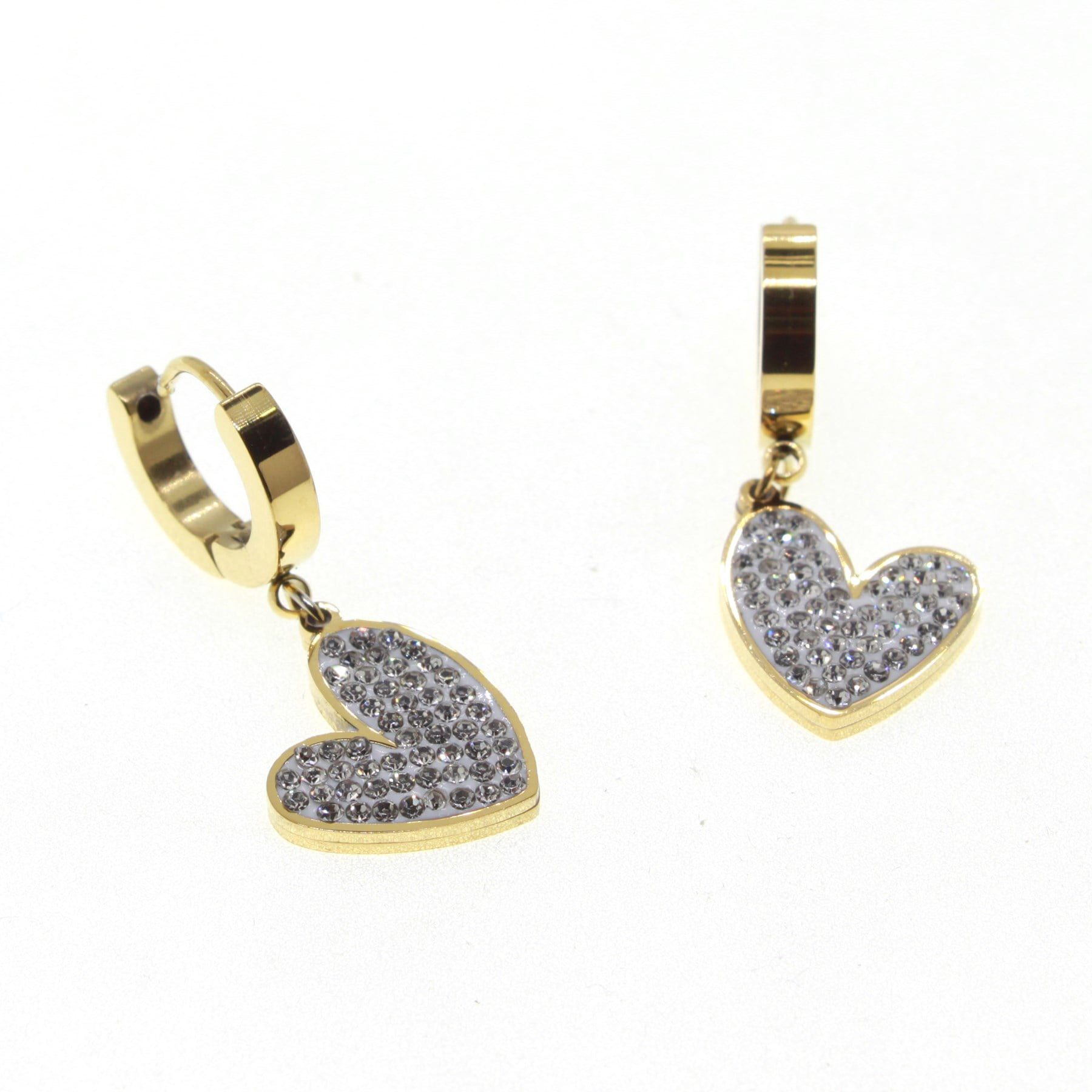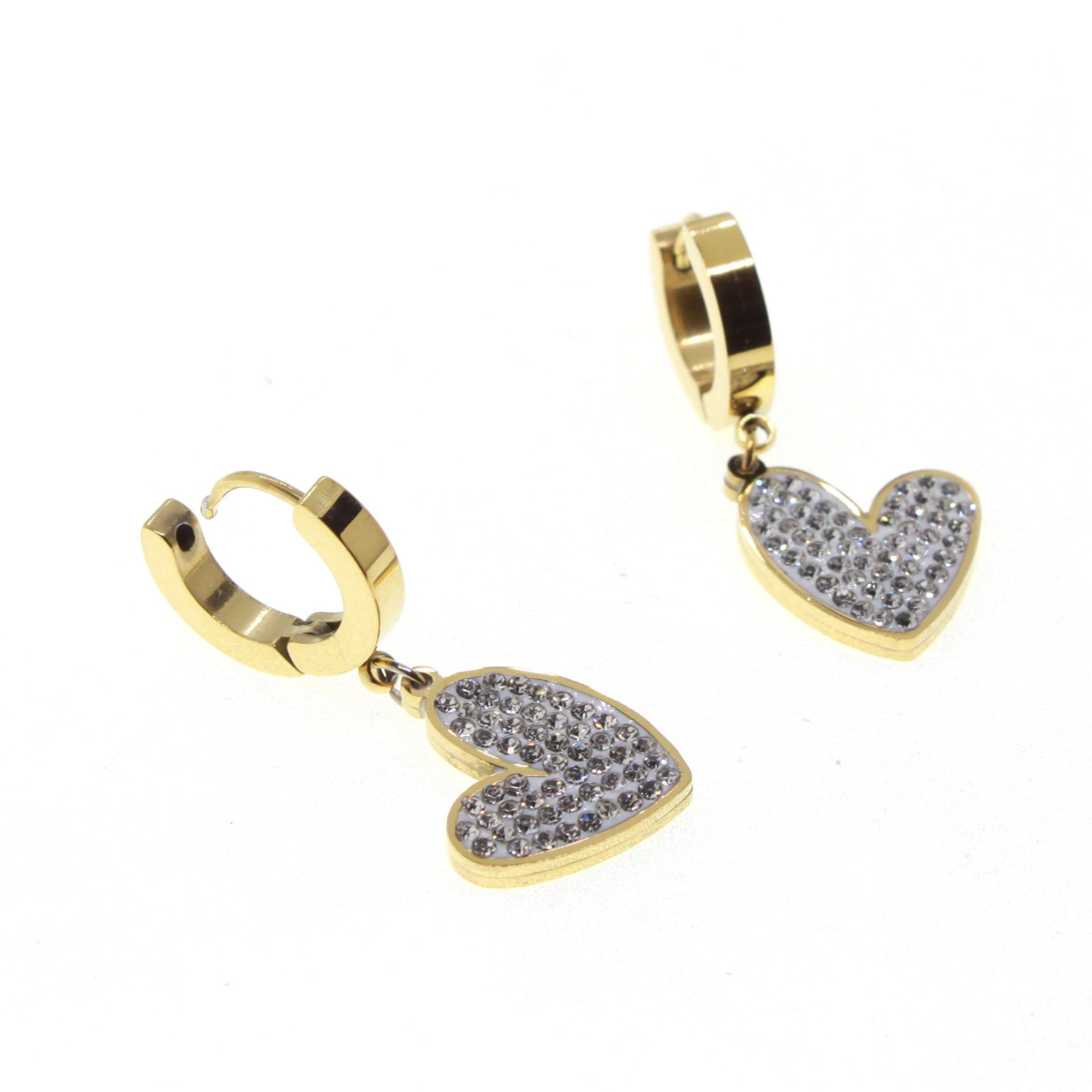 Toptan Altın Renk Mengeç Taşlı Kalp Çelik Küpe – 1576