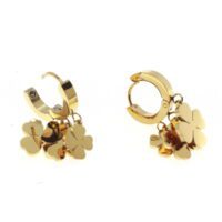 Toptan Altın Renk Mengeç Üç Yonca Sallantılı Çelik Küpe – 1585