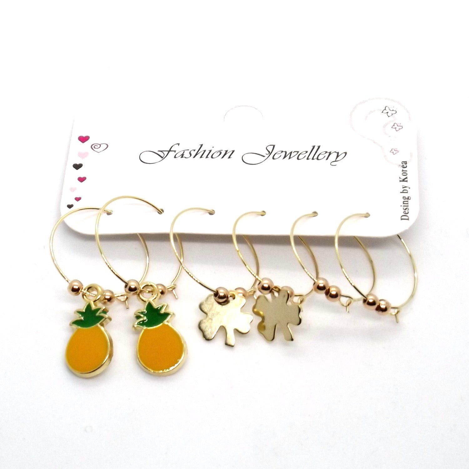 Toptan Altın Renk Mineli Ananas Figurlu Kombin Küpe 659