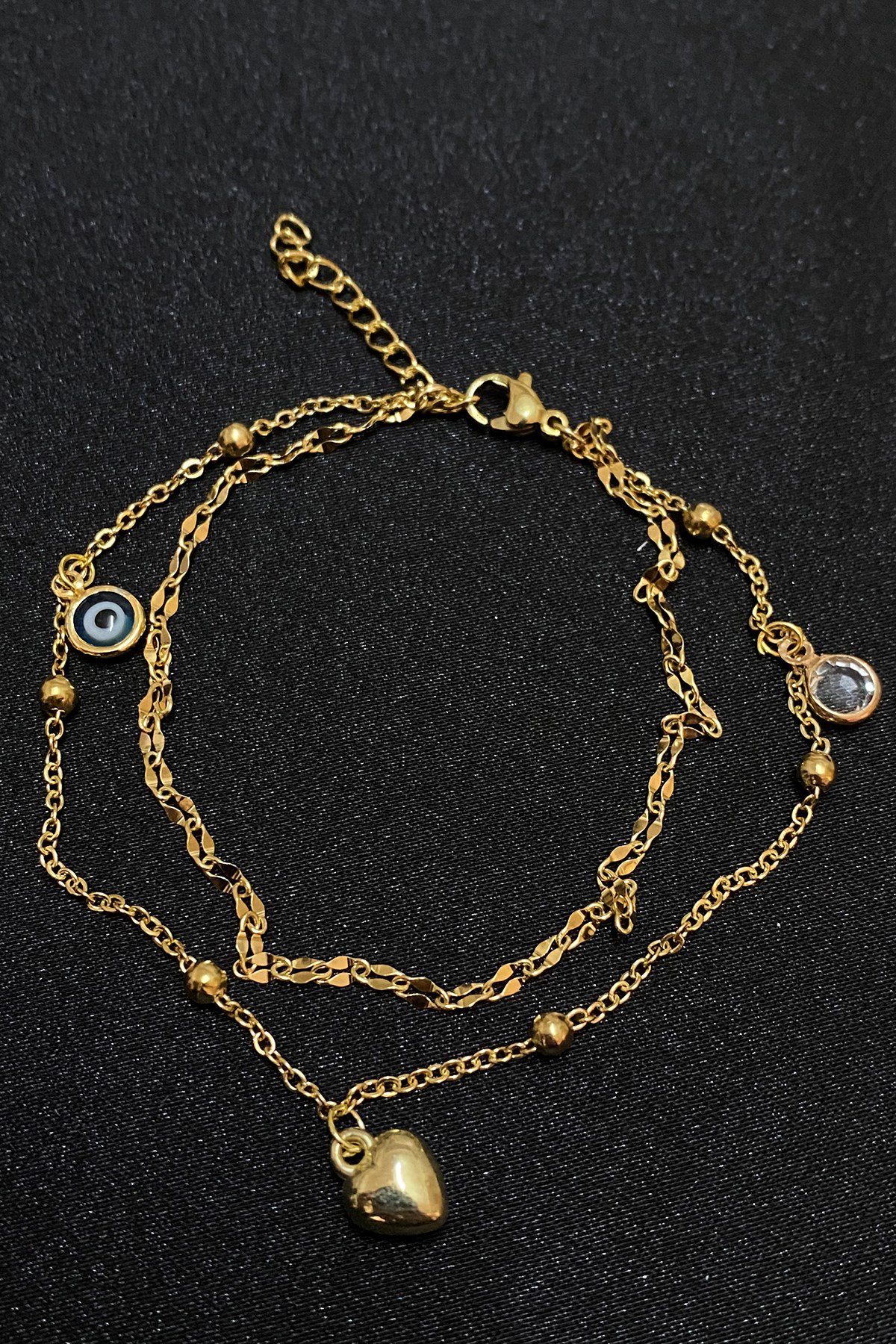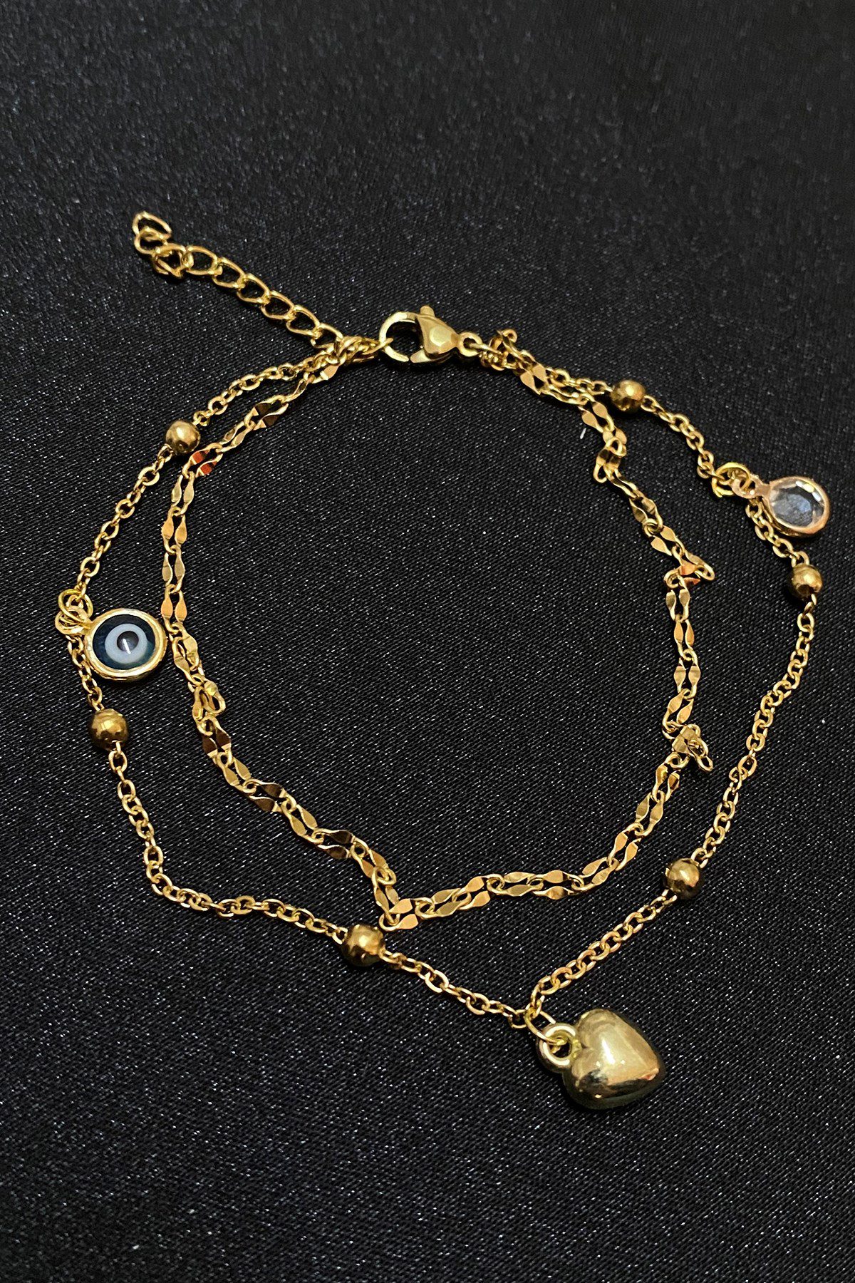 Toptan Altın Renk Nazar Göz Kalp Model Singapur Ve Top Zincir Çelik Halhal – 3298