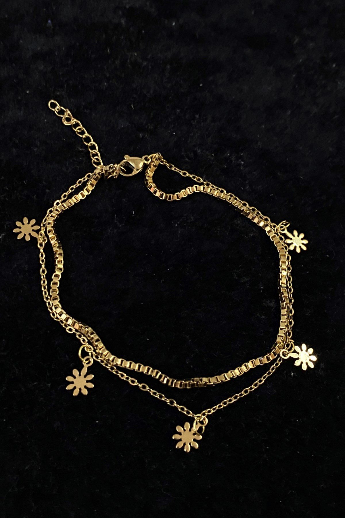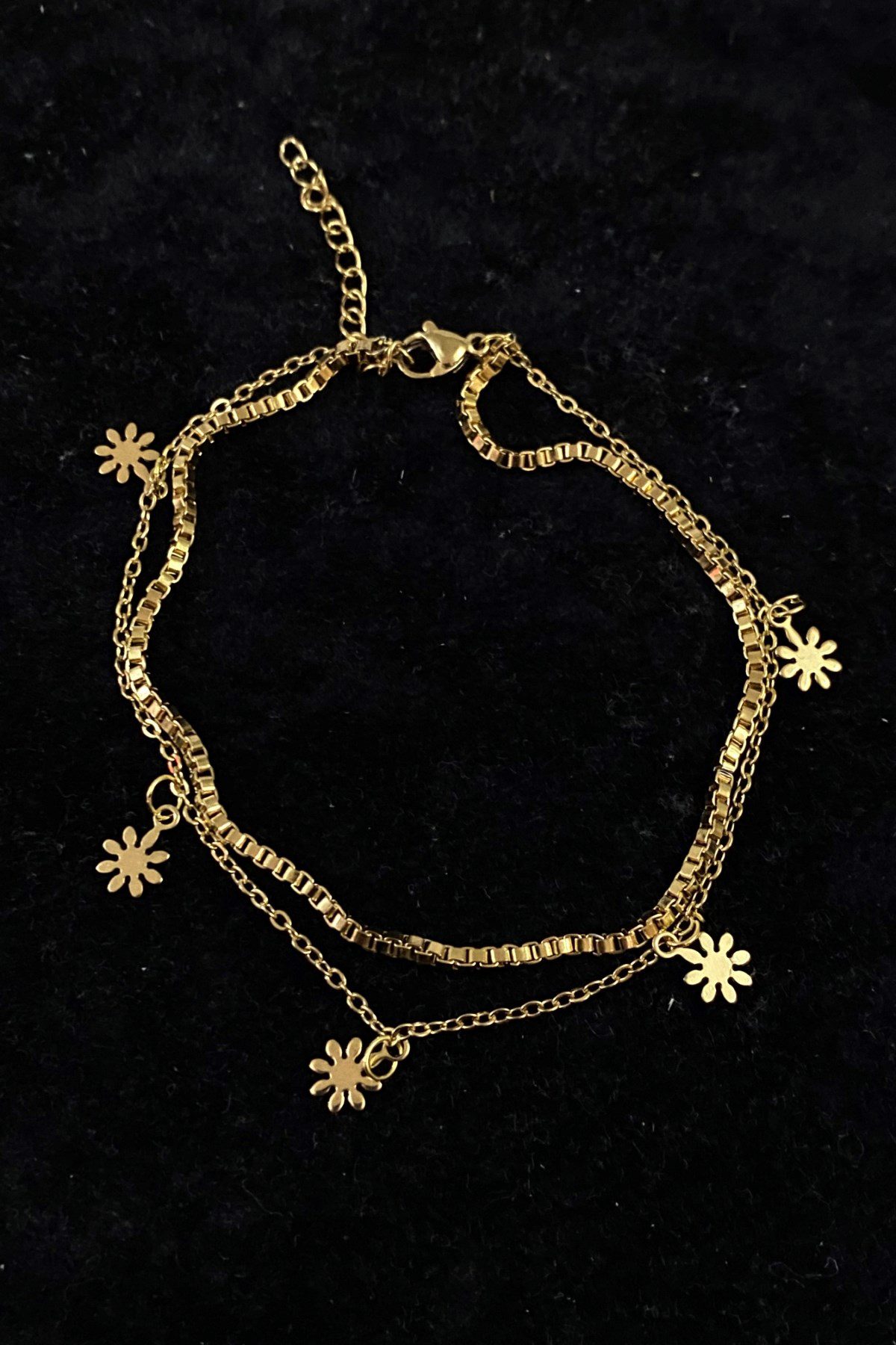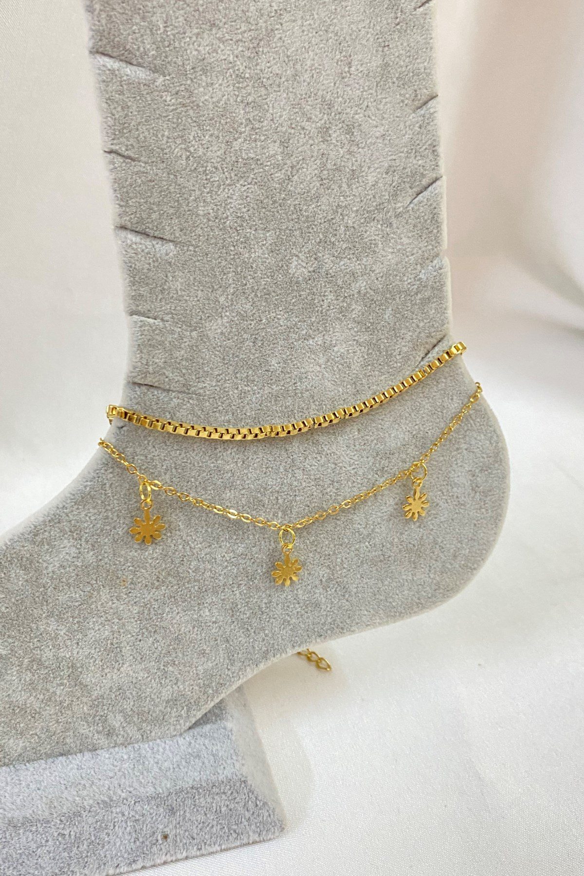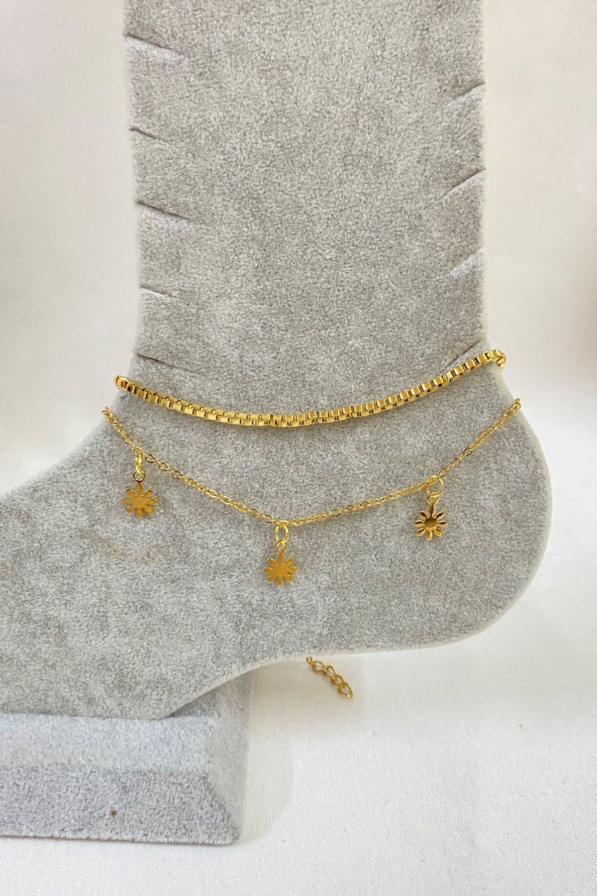 Toptan Altın Renk Papatya Model Asansör Ve Sf Zincir Çelik Halhal – 3239