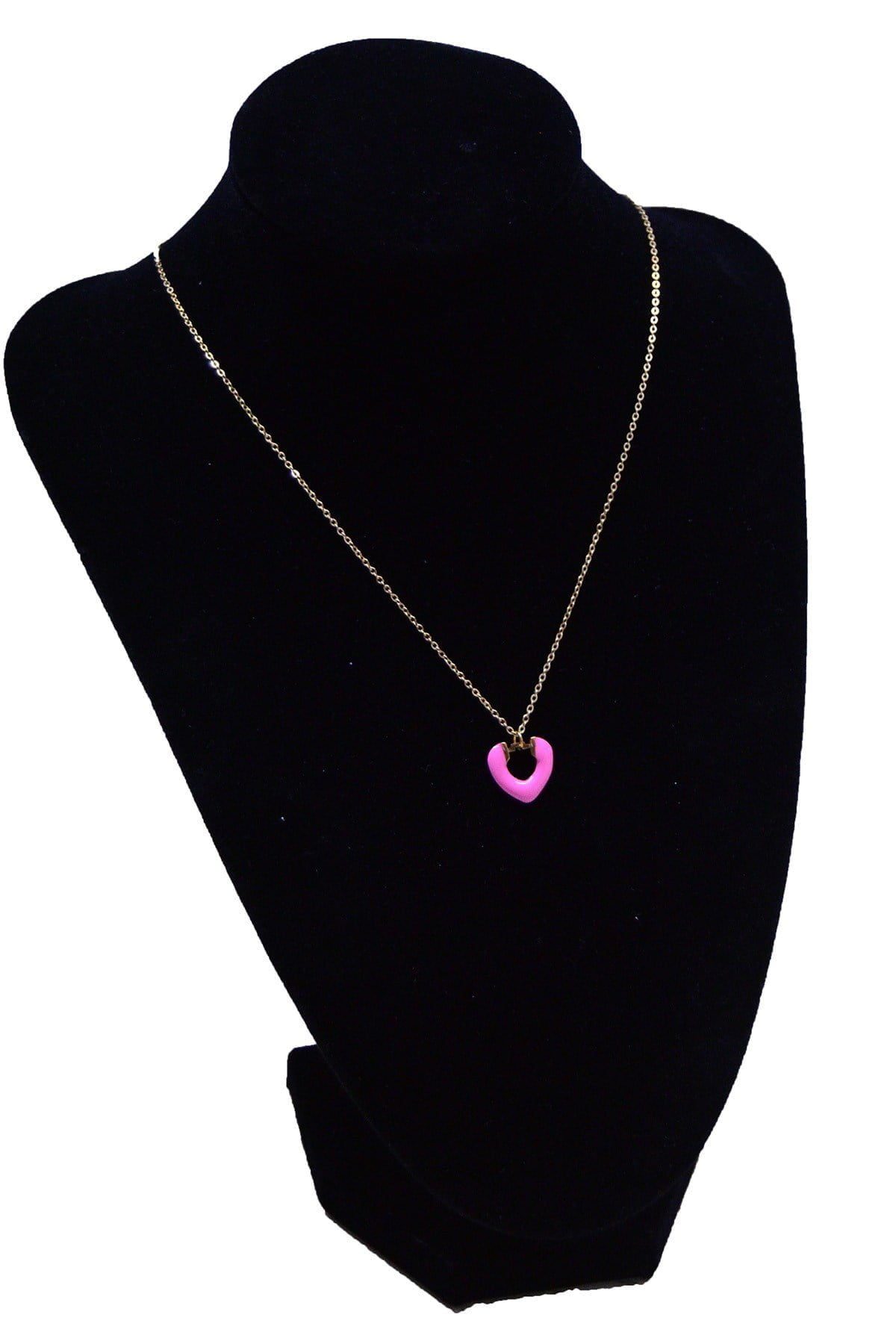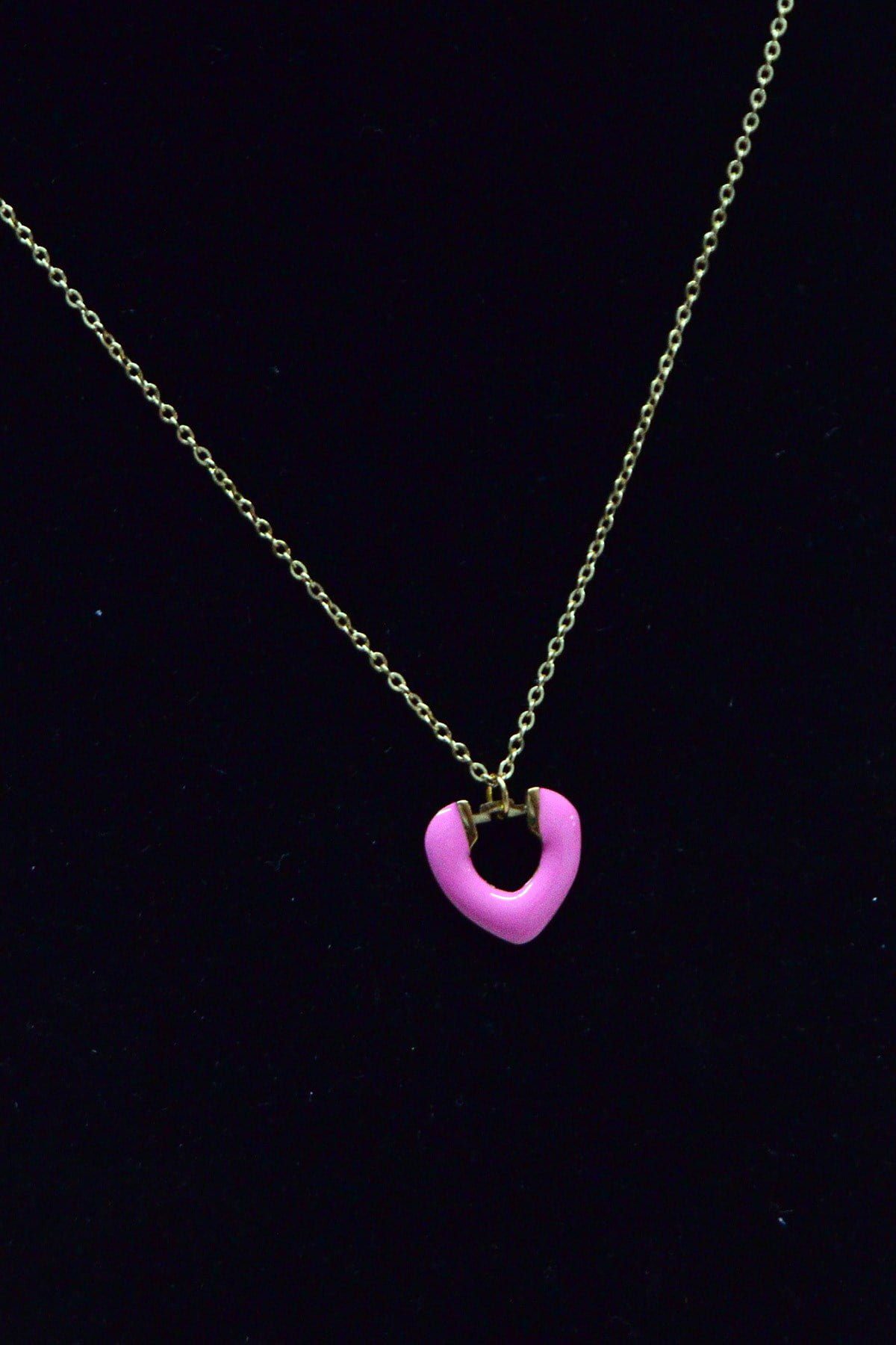 Toptan Altın Renk Pembe Kalp Çelik Kolye – 2486