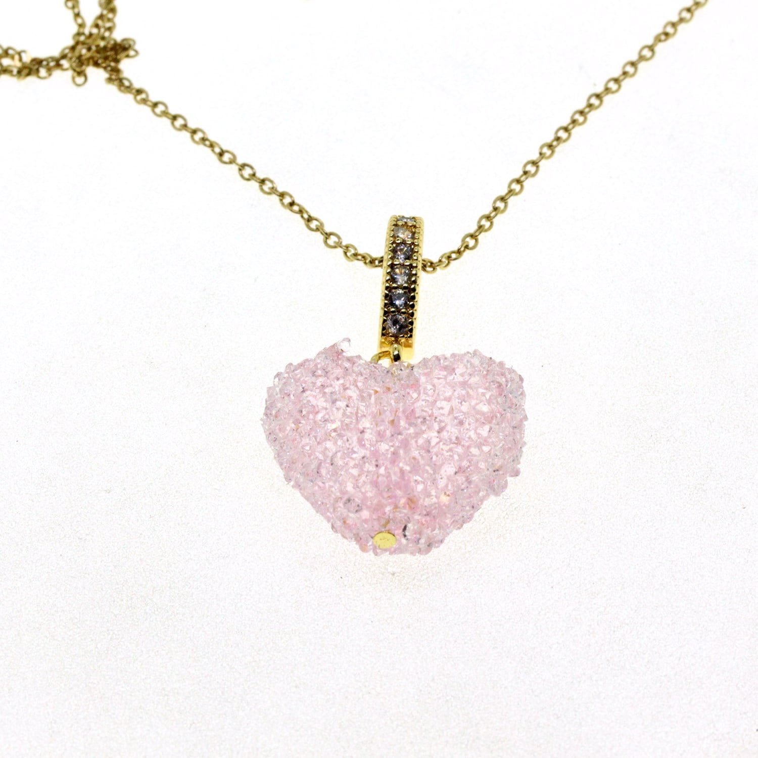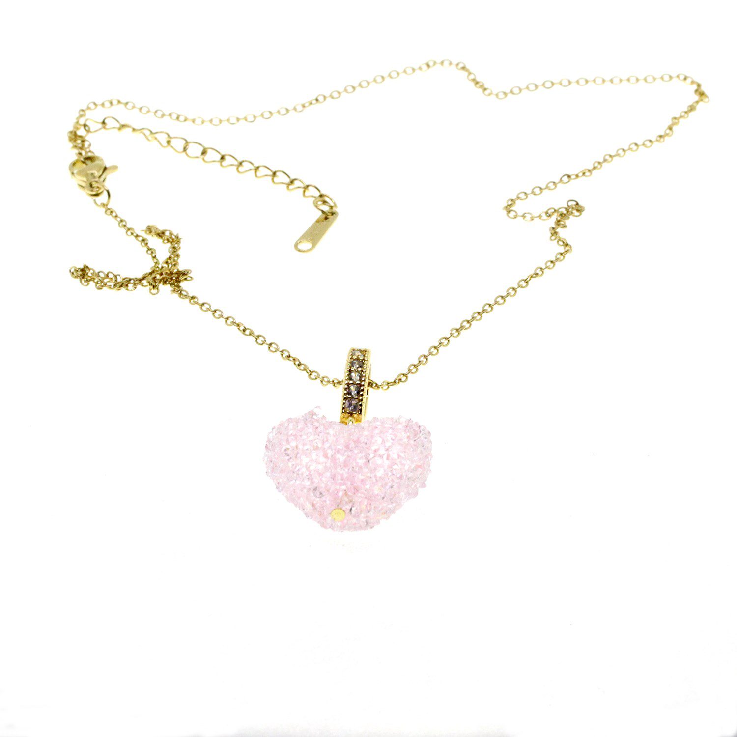 Toptan Altın Renk Pembe Kalp Çelik Kolye – 2807