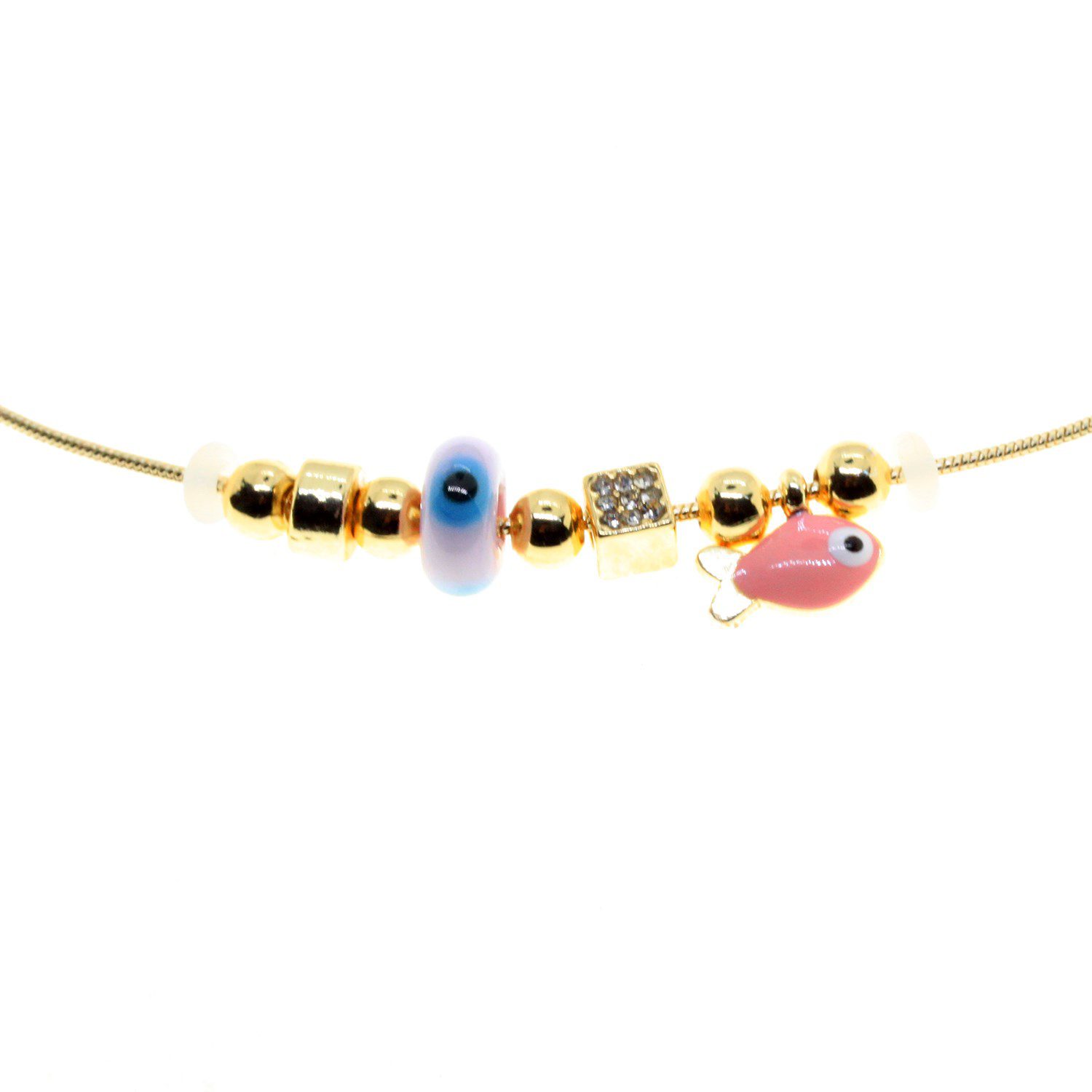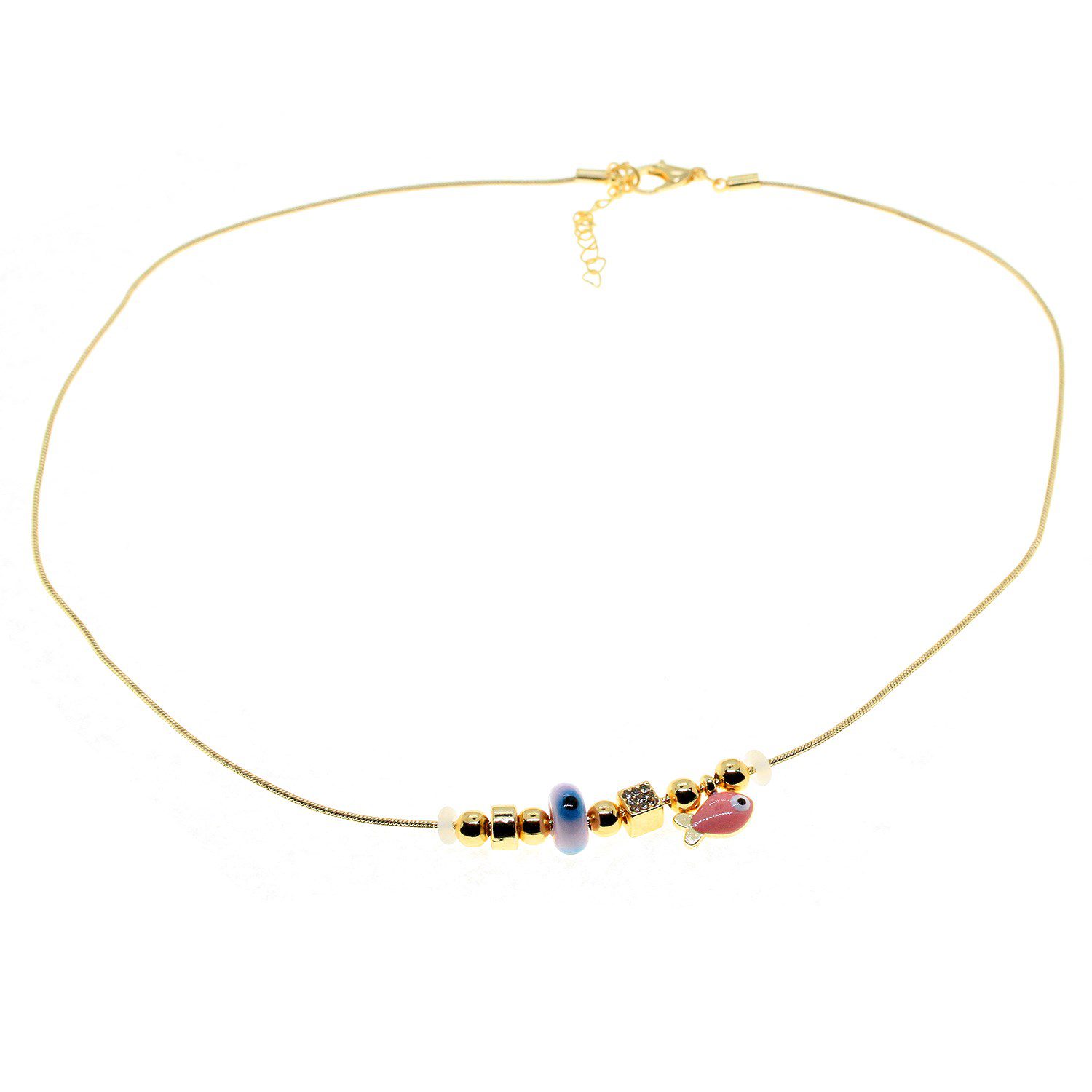Toptan Altın Renk Pembe Mineli Balık Pandora Model Zirkon Kolye – 2984