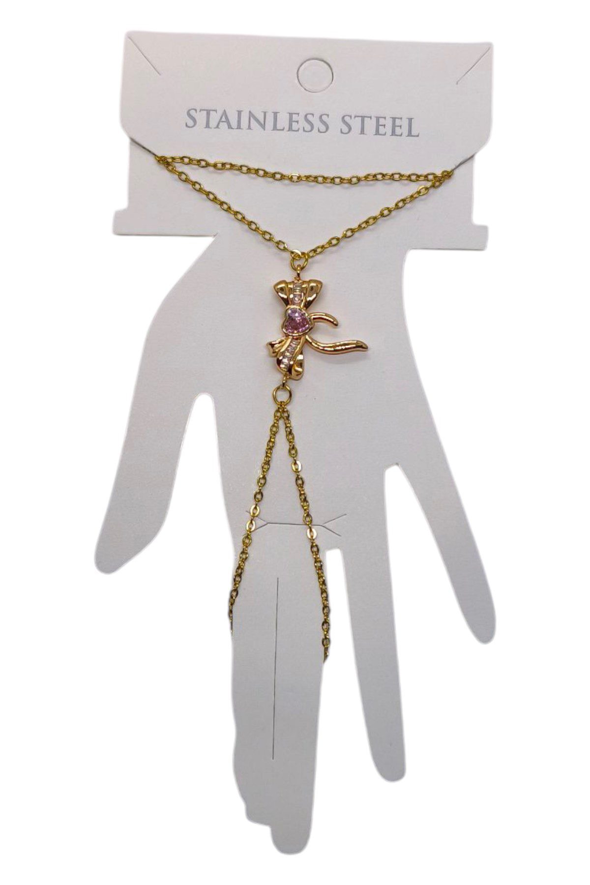 Toptan Altın Renk Pembe Taş Fiyonk Çelik Şahmeran – 3549