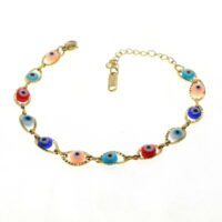 Toptan Altın Renk Renkli Göz Nazar Çelik Bileklik – 1550