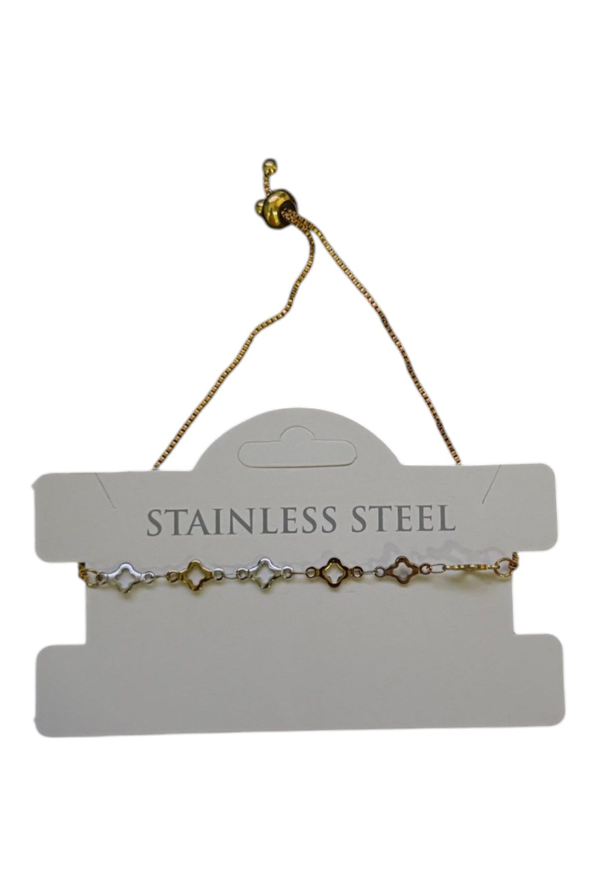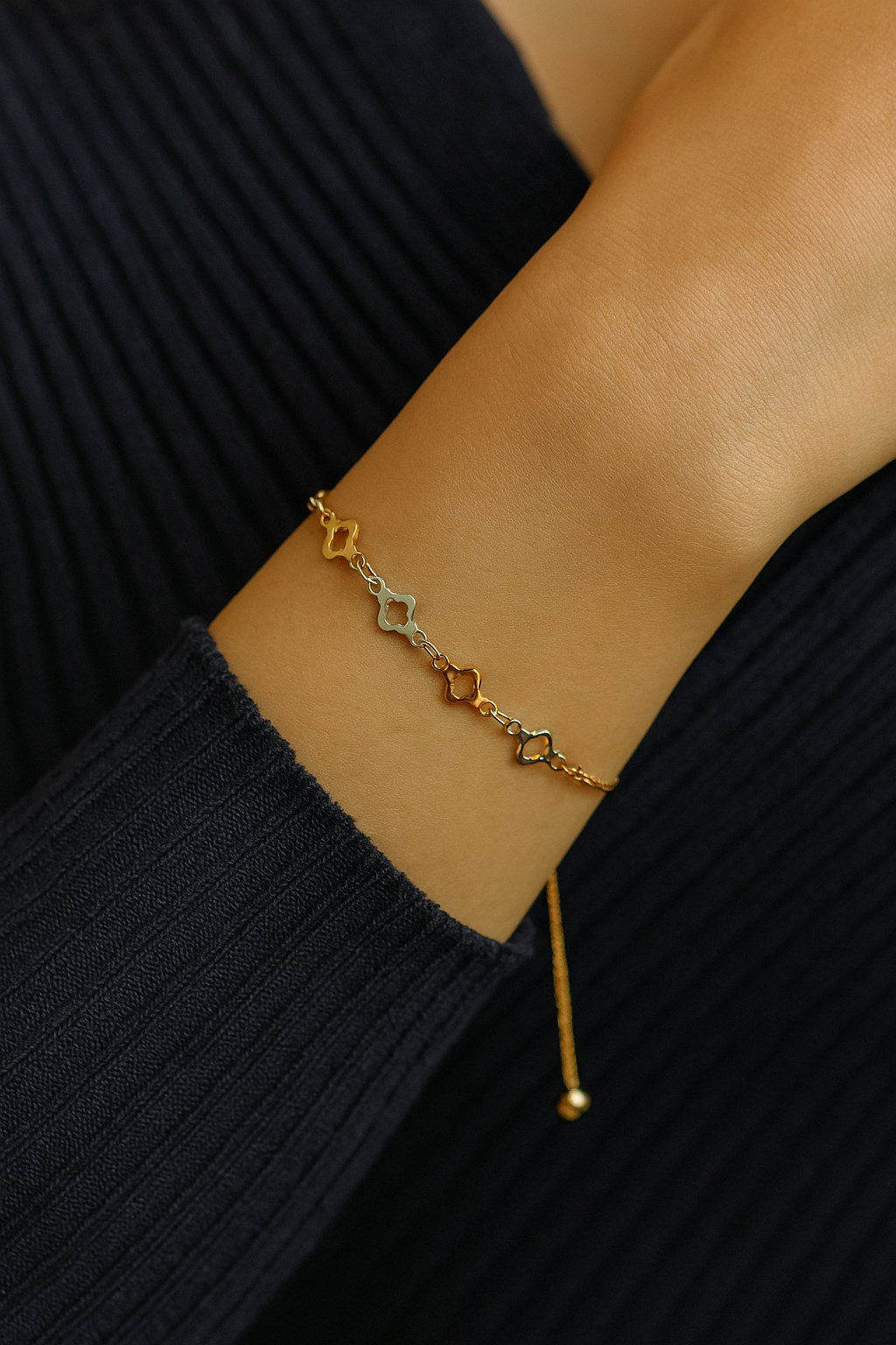 Toptan Altın Renk Sarı Beyaz Van Cleff Asansör Çelik Bileklik – 3582