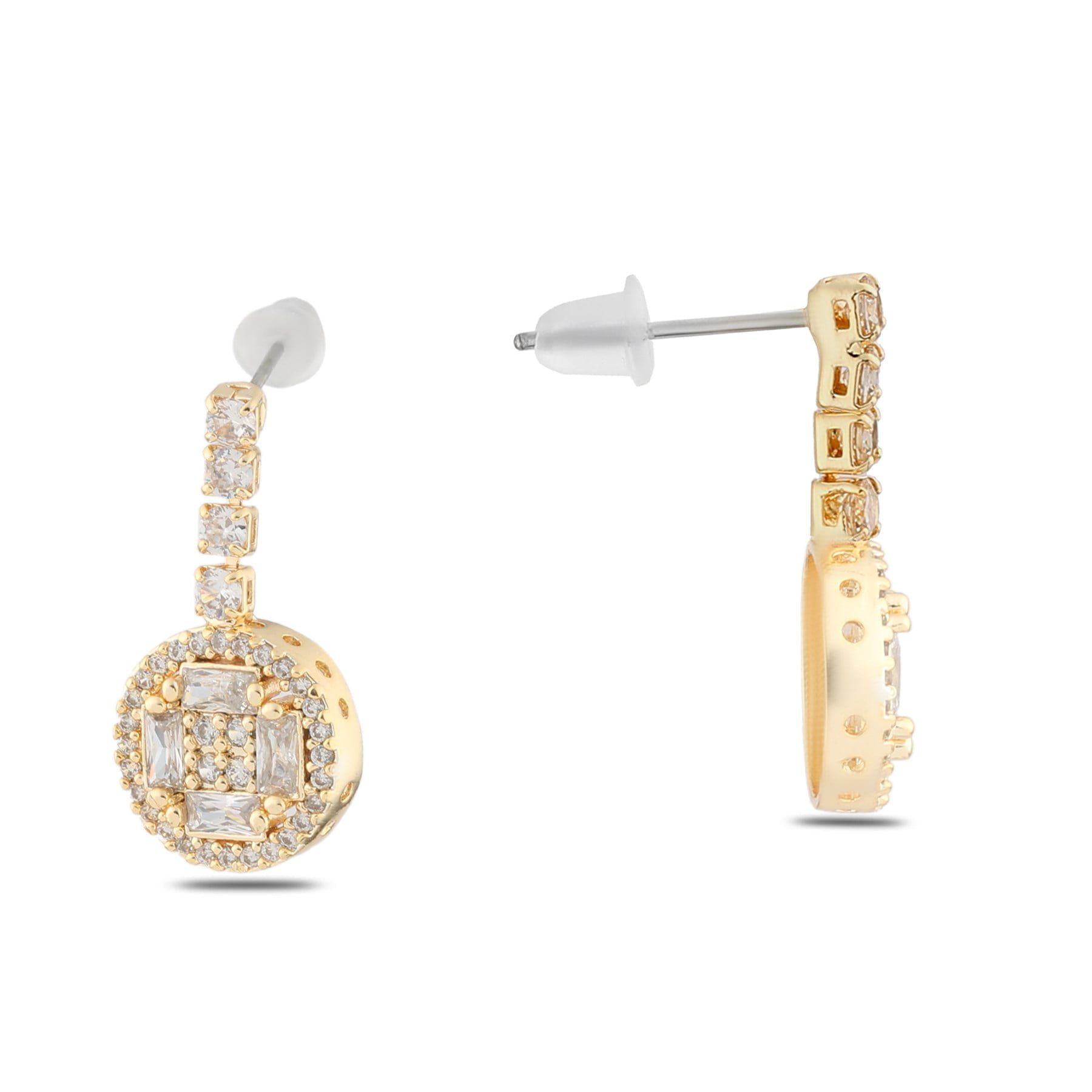 Toptan Altın Renk Şerit Sallantılı Çivili Zirkon Küpe – 1321