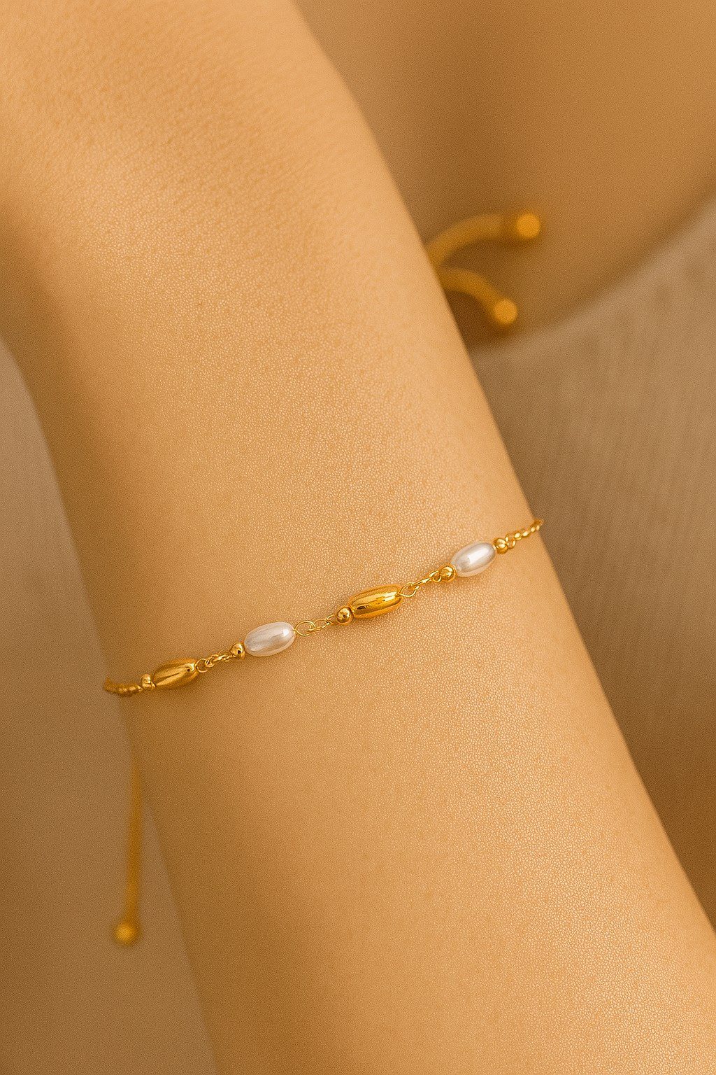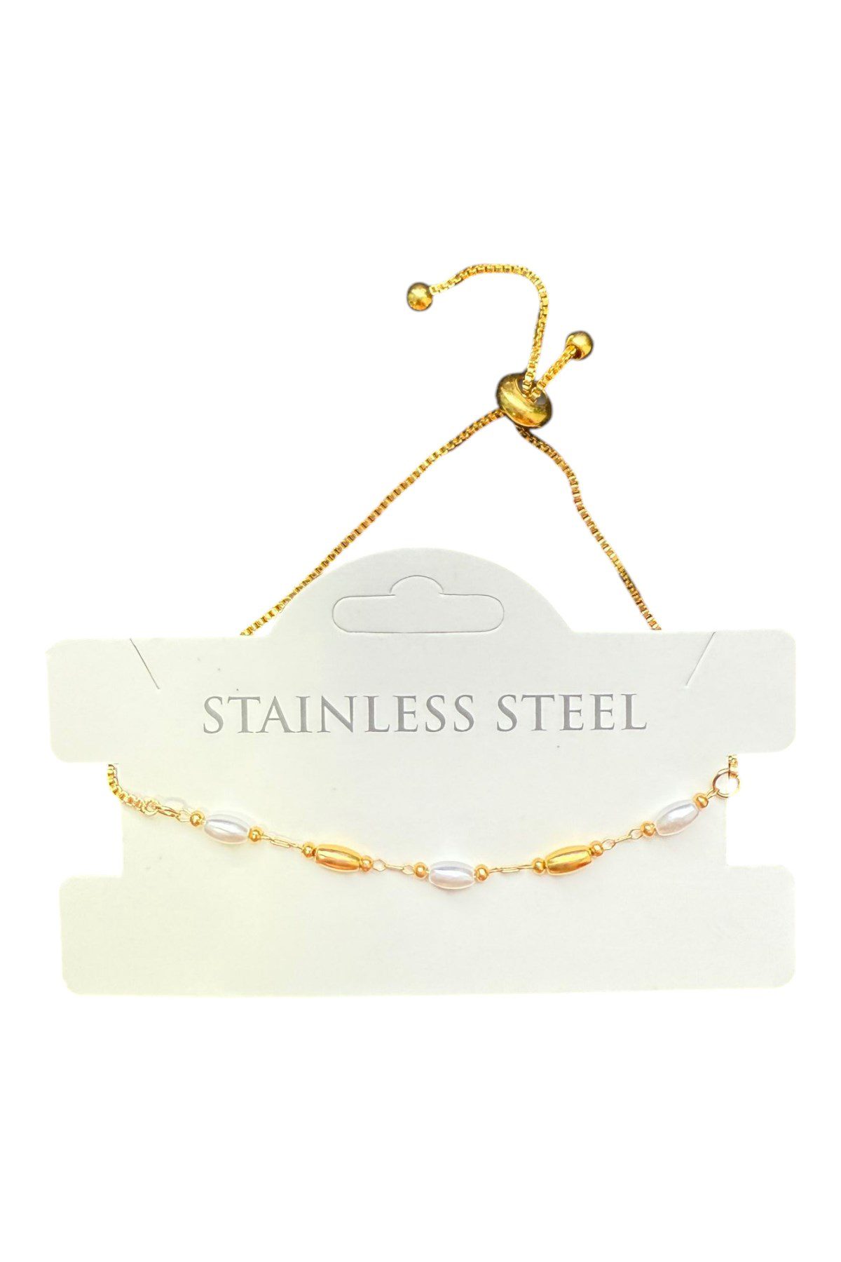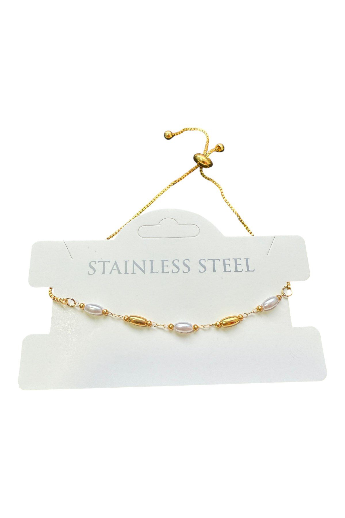 Toptan Altın Renk Silindir İnci Sarı Metal Asansör Çelik Bileklik – 3610