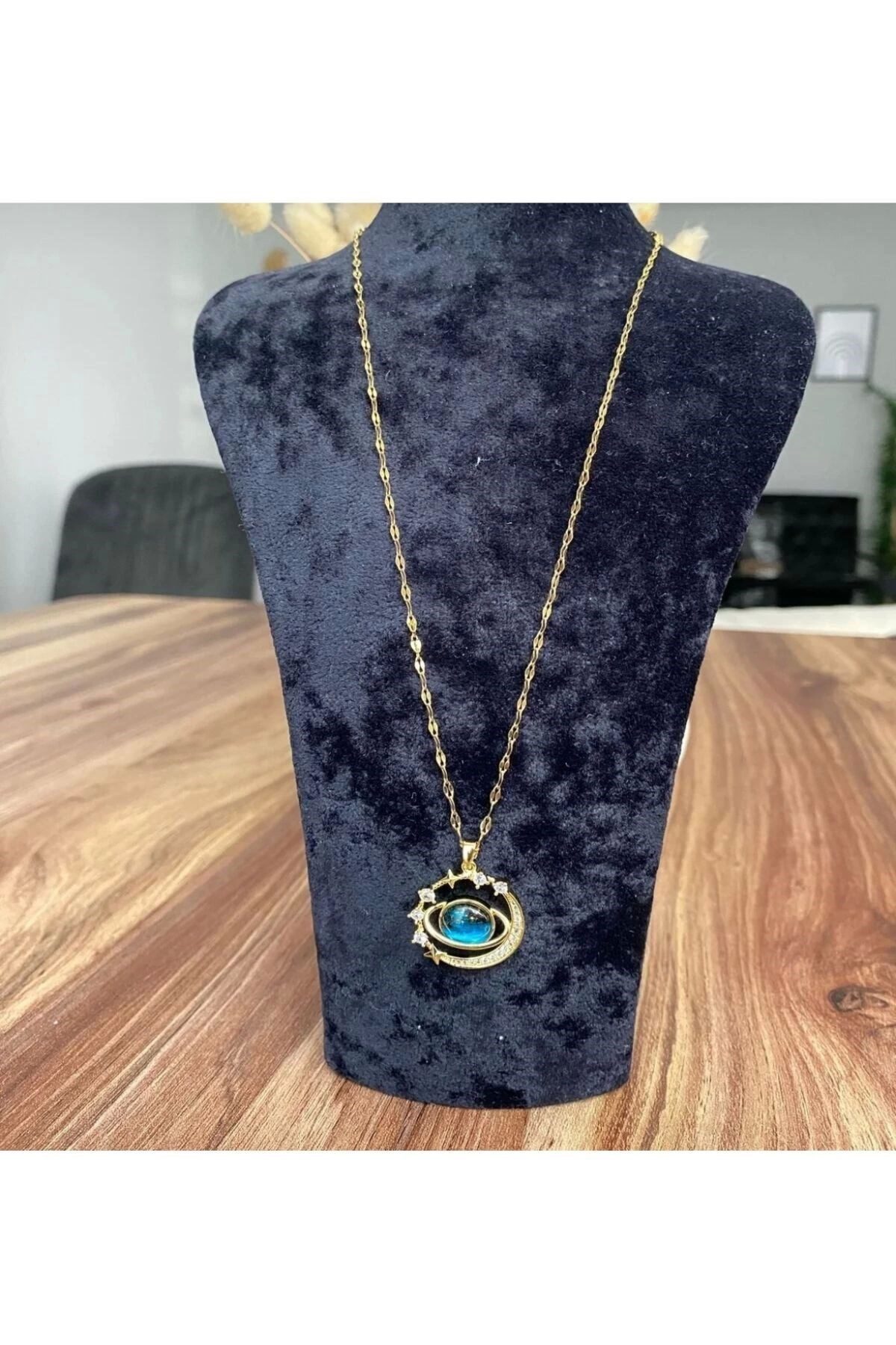 Toptan Altın Renk Singapur Zincirde Zirkon Taşlı Gezegen Temalı Vip Solmaz Kararmaz Çelik Kolye – 3049