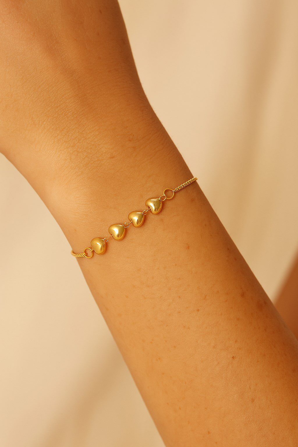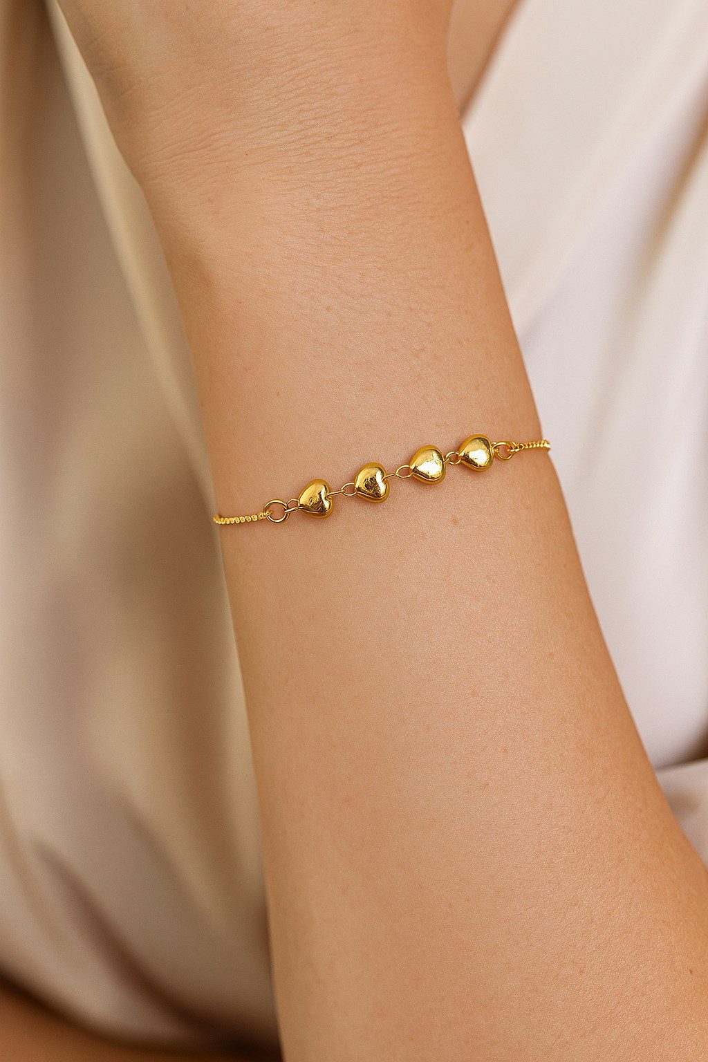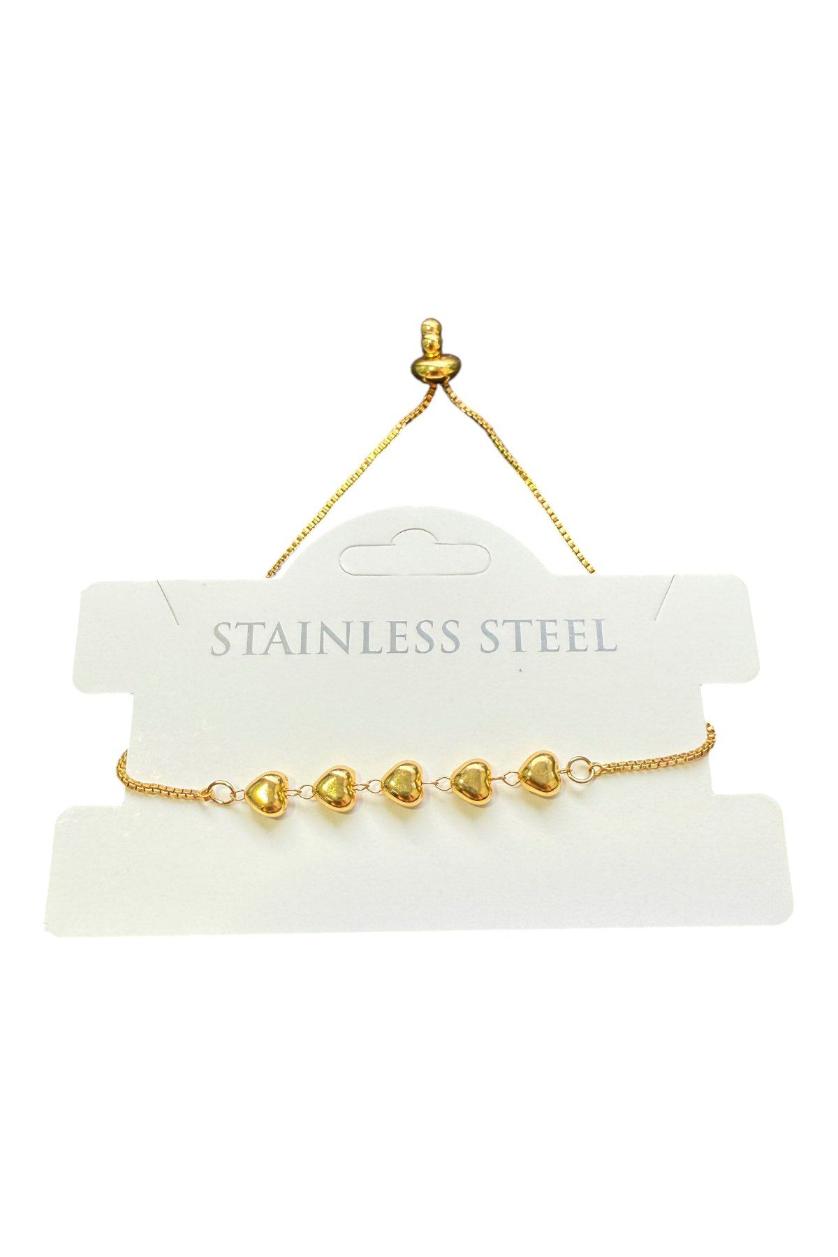 Toptan Altın Renk Sıralı Kalp Asansör Çelik Bileklik – 3608