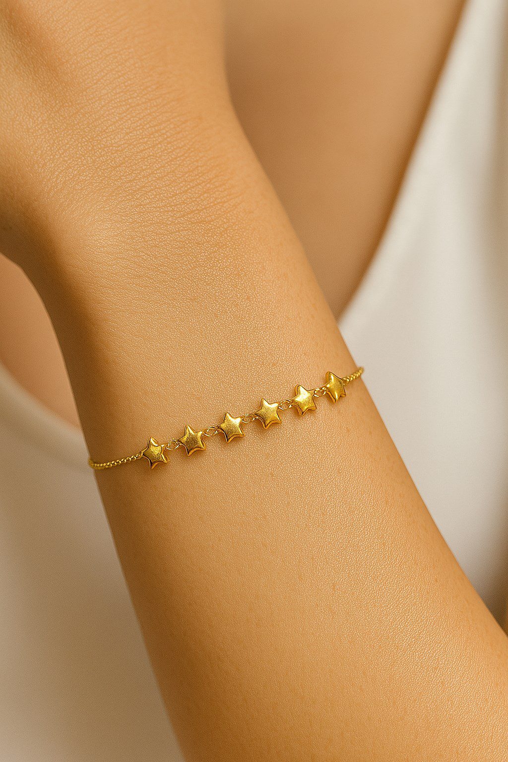 Toptan Altın Renk Sıralı Yıldız Asansör Çelik Bileklik – 3611