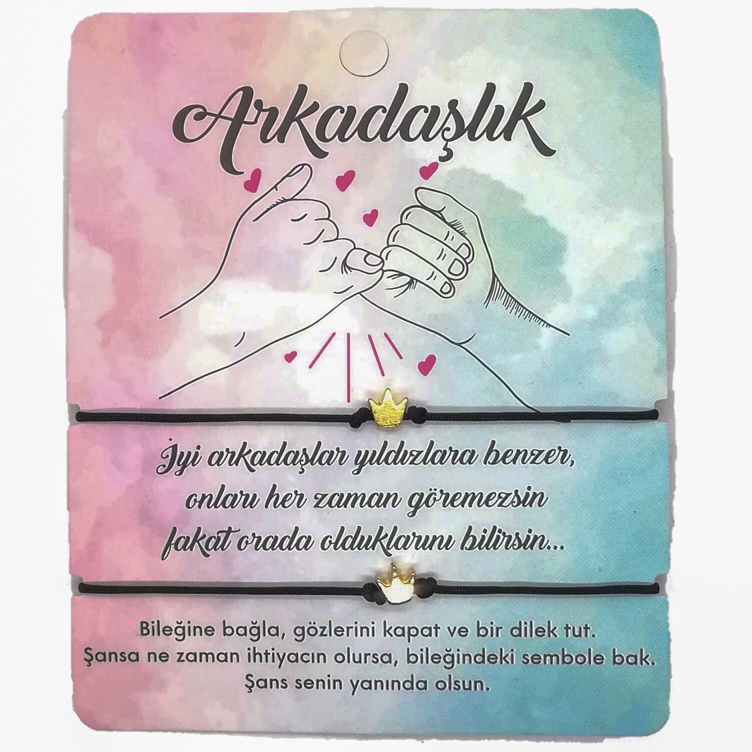 Toptan Altın Renk Siyah İp Taç Arkadaş Bilekliği – 1141
