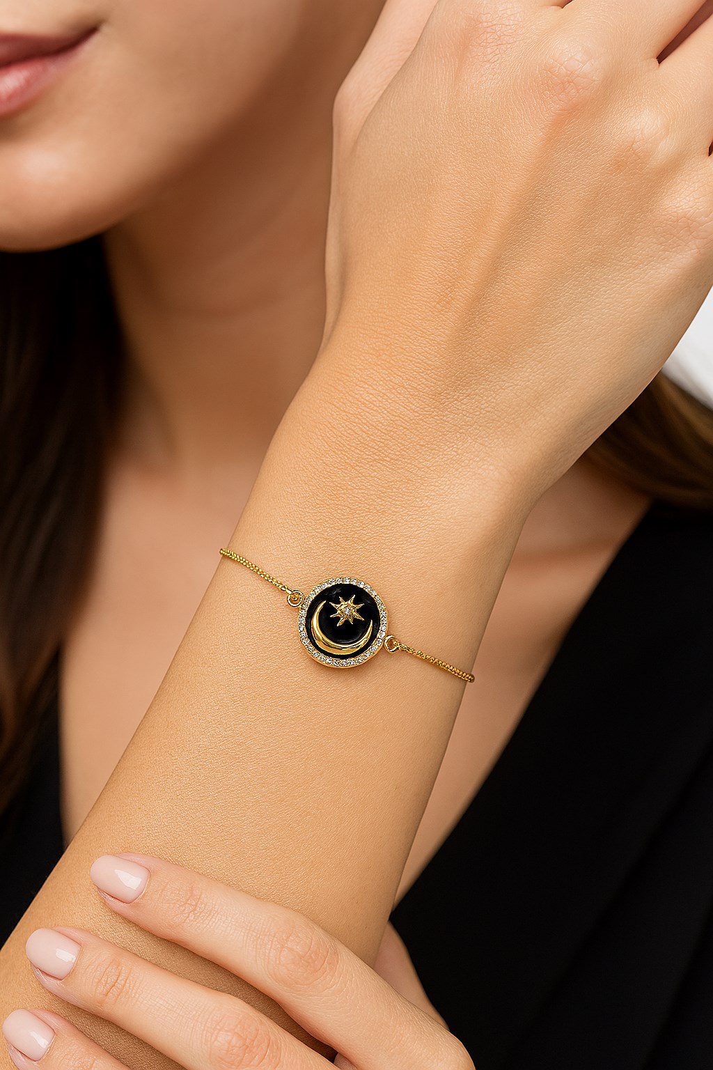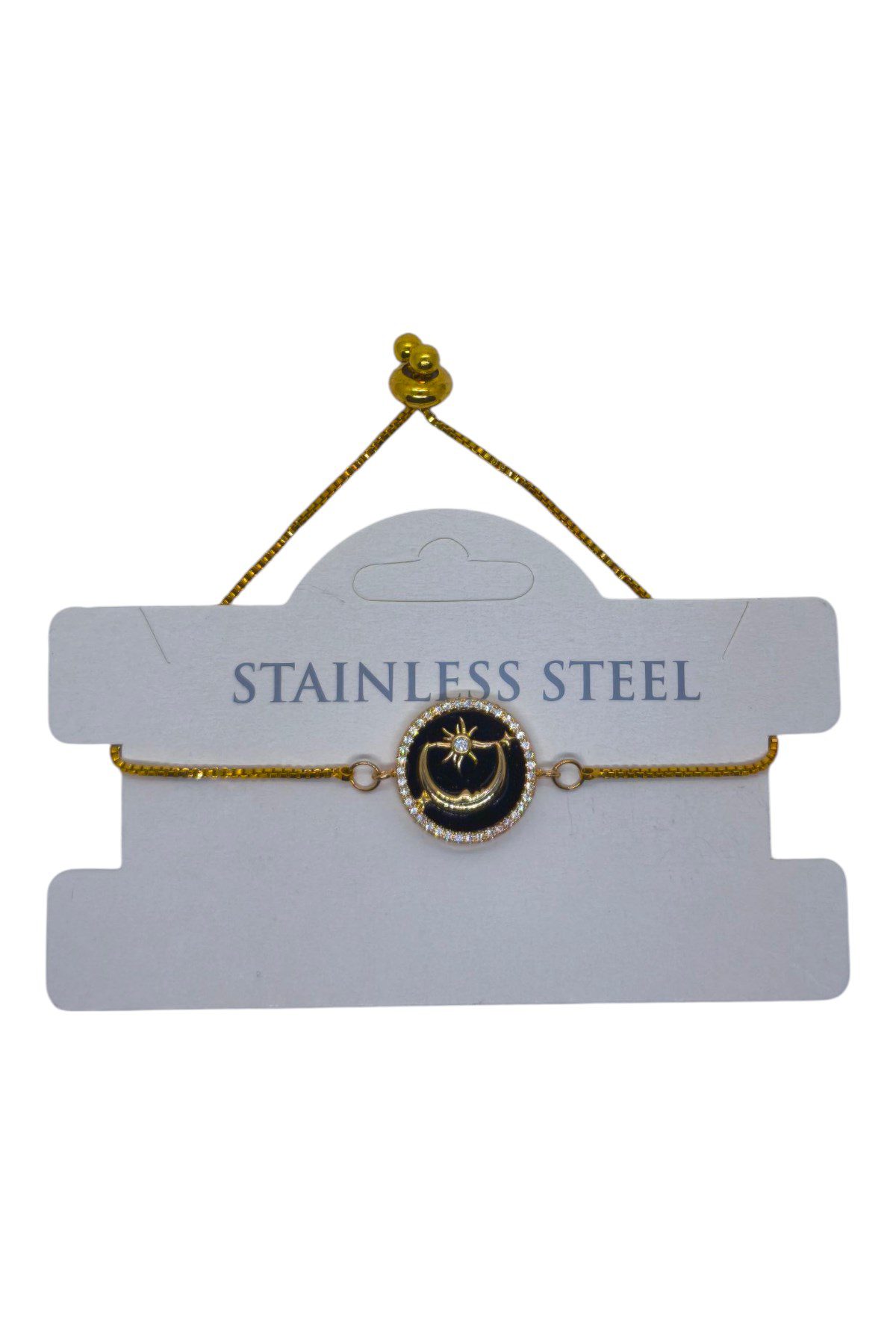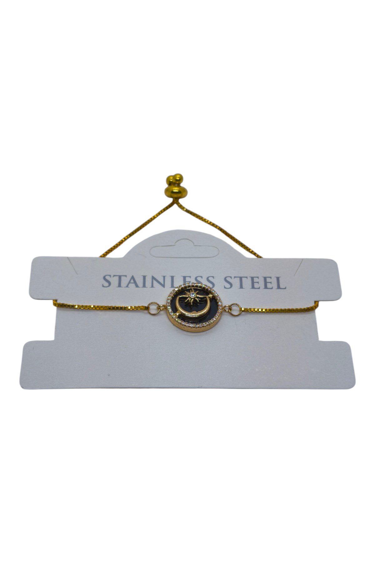 Toptan Altın Renk Siyah Mine Ay Yıldız Asansör Çelik Bileklik – 3624