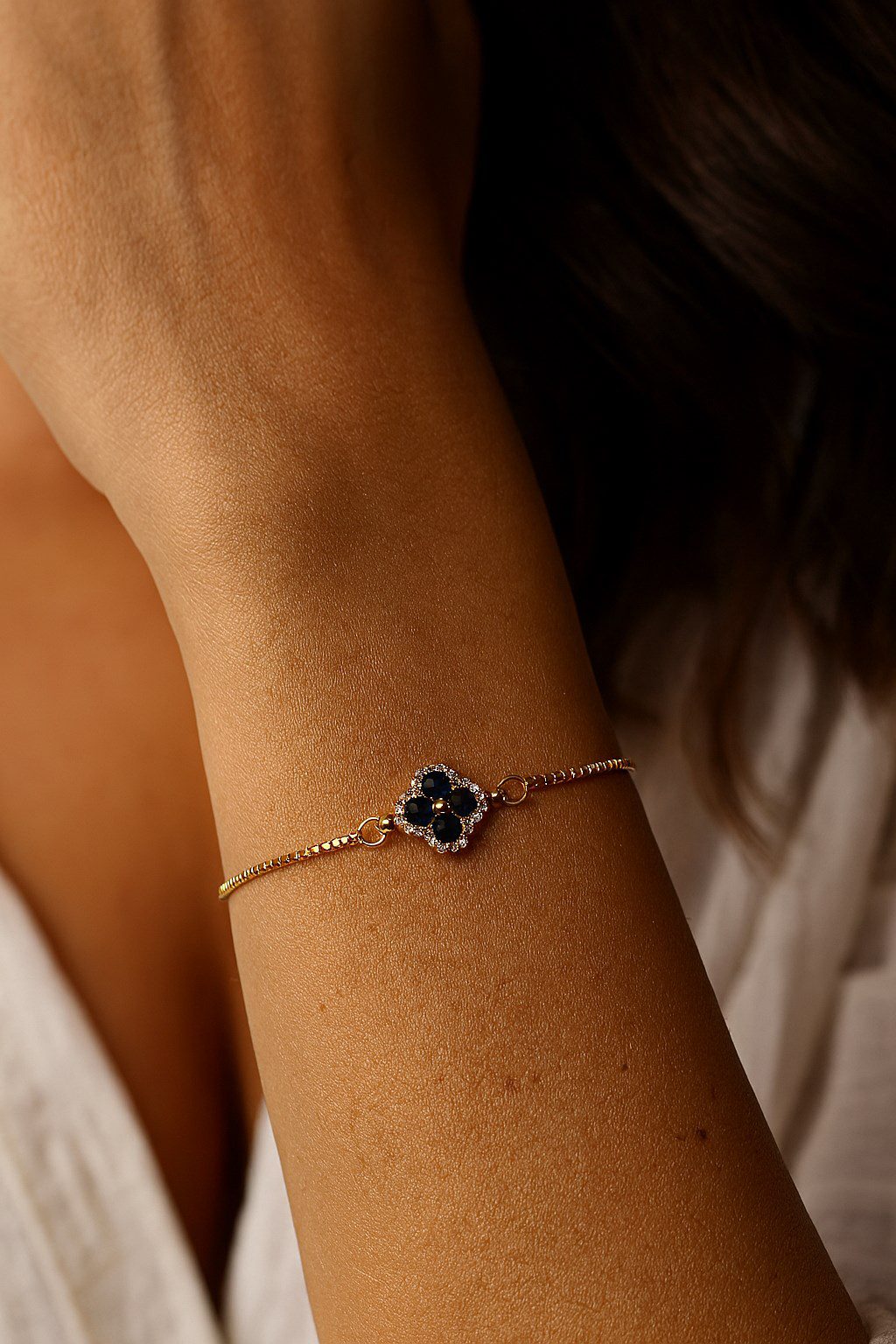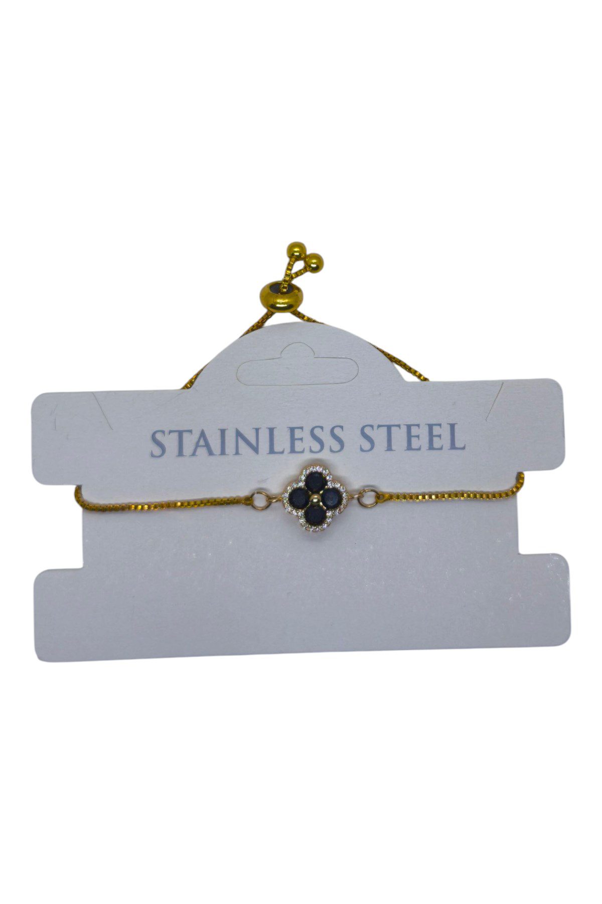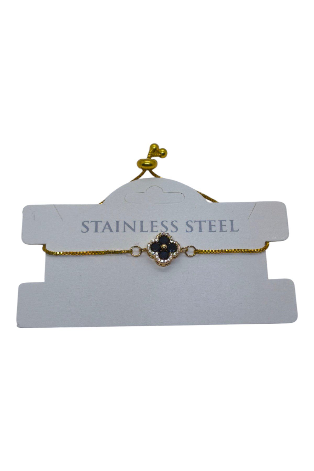 Toptan Altın Renk Siyah Taş Van Cleff Yonca Asansör Çelik Bileklik – 3625