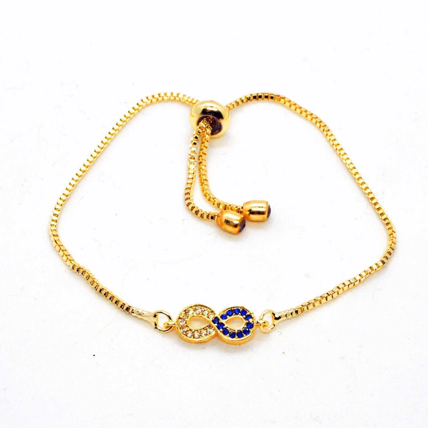 Toptan Altın Renk Sonsuzluk Lacivert Beyaz Taşlı Asansör Bileklik 925