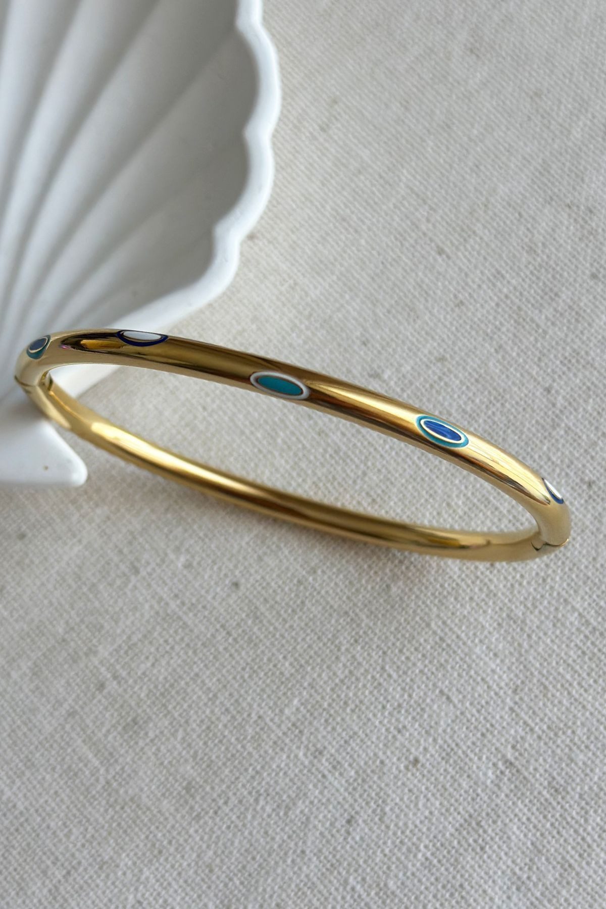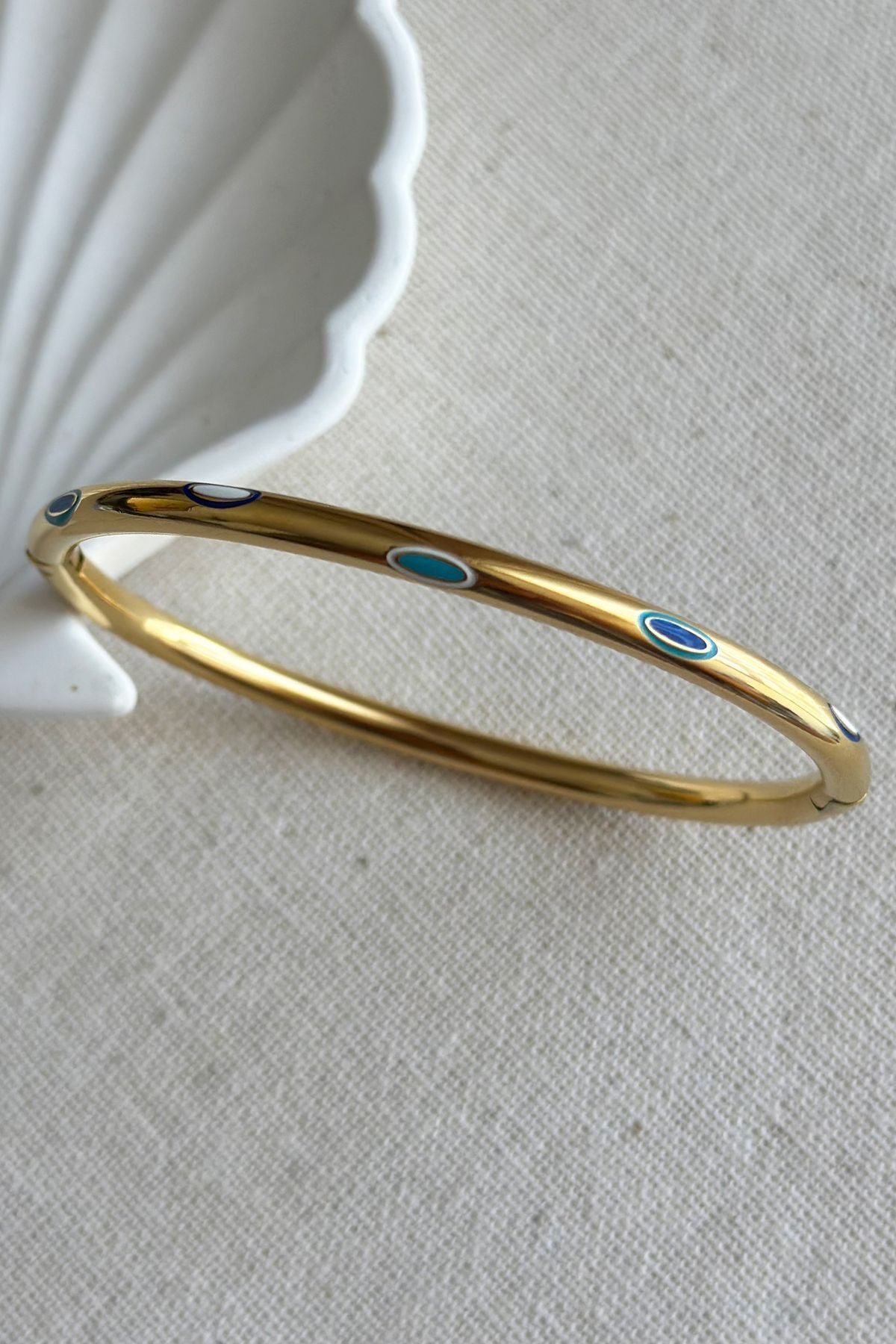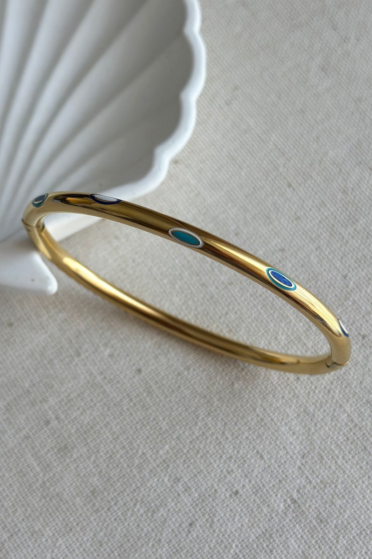 Toptan Altın Renk Tam Tur Ince Nazar Kelepçe Kadın Nazarlı Çelik Bileklik – 3196