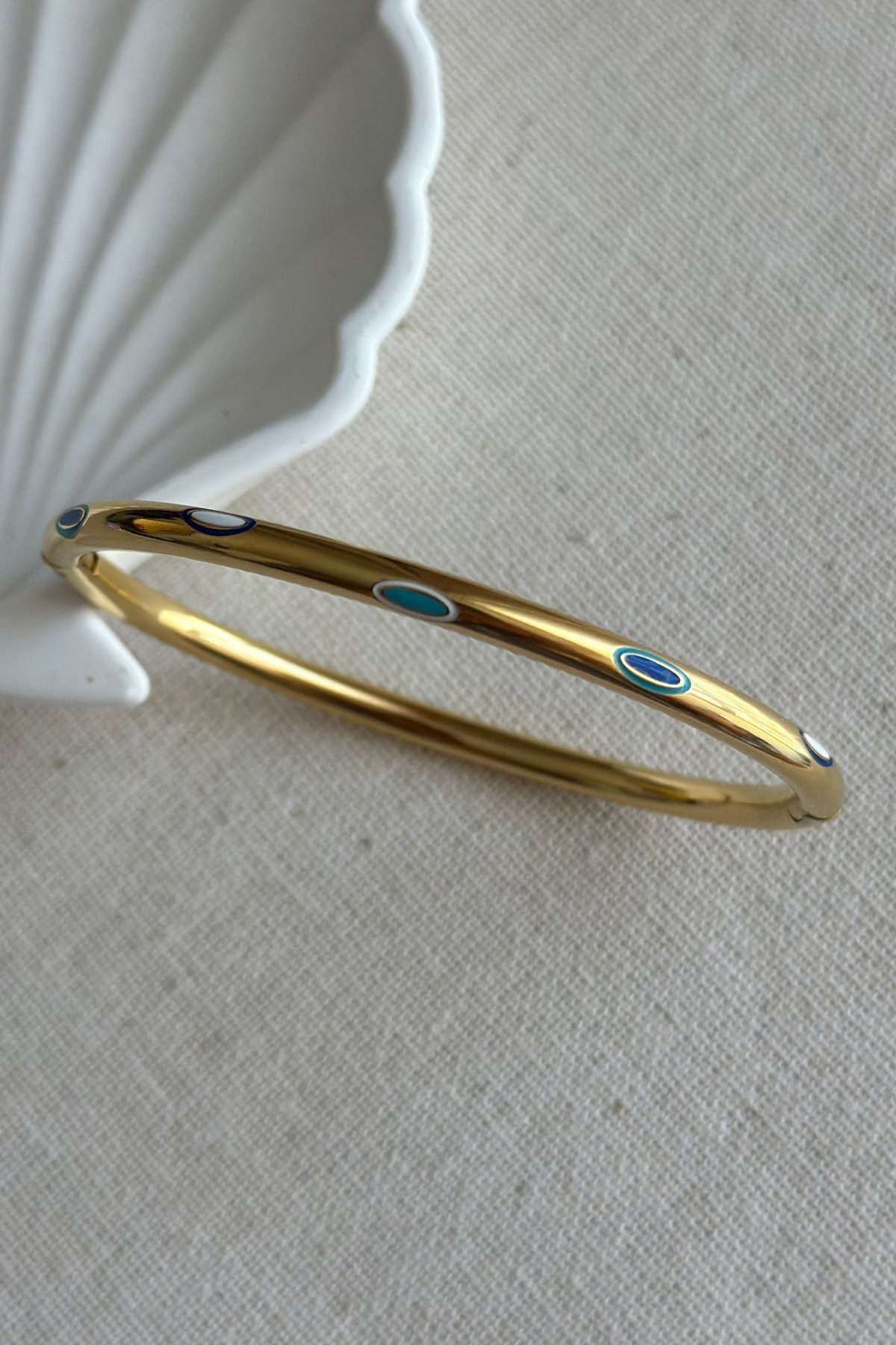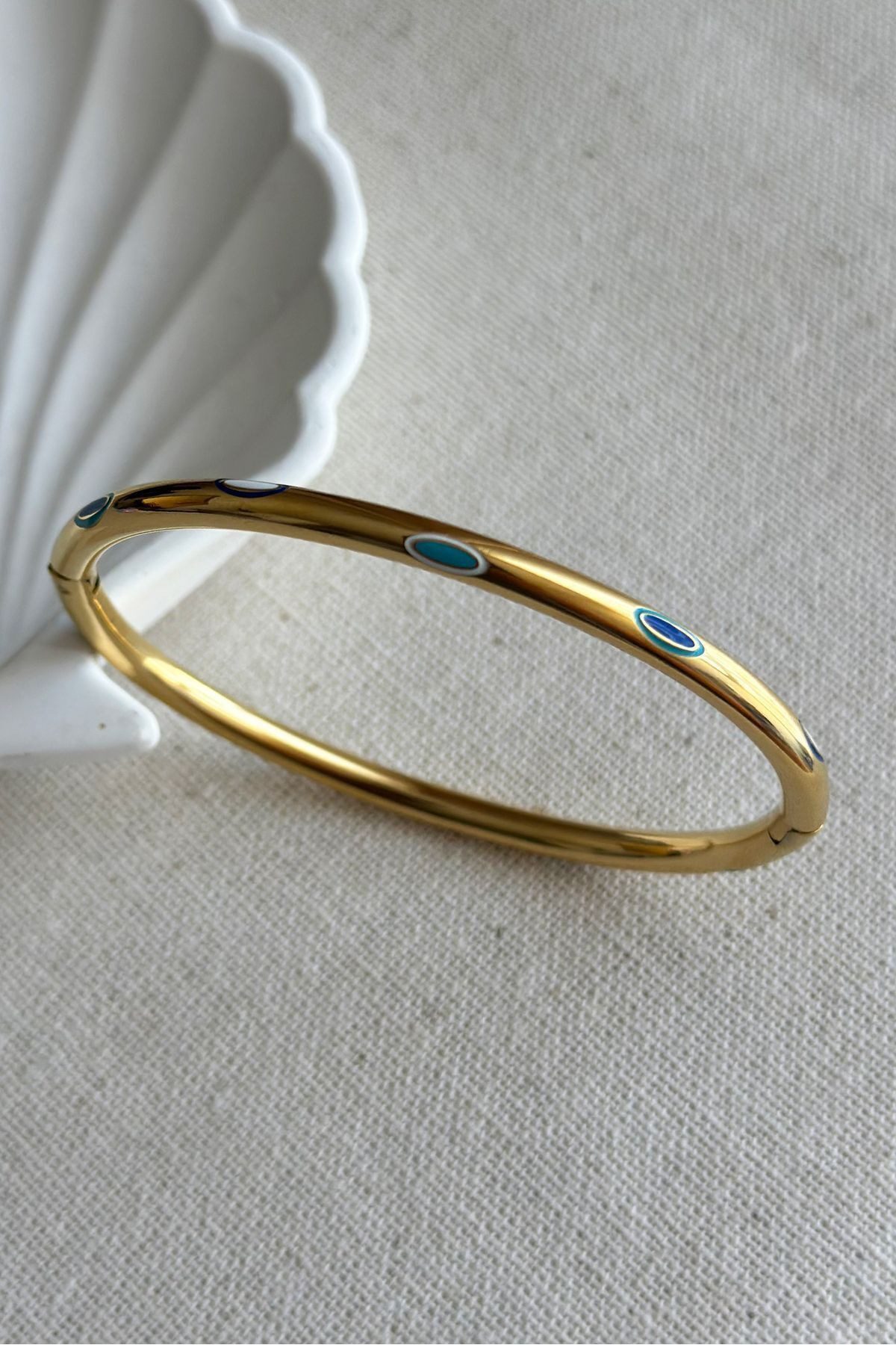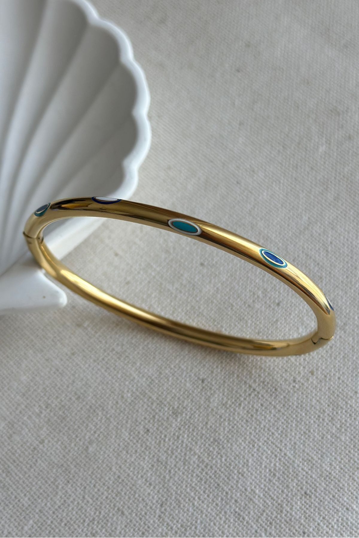 Toptan Altın Renk Tam Tur Ince Nazar Kelepçe Kadın Nazarlı Çelik Bileklik – 3196