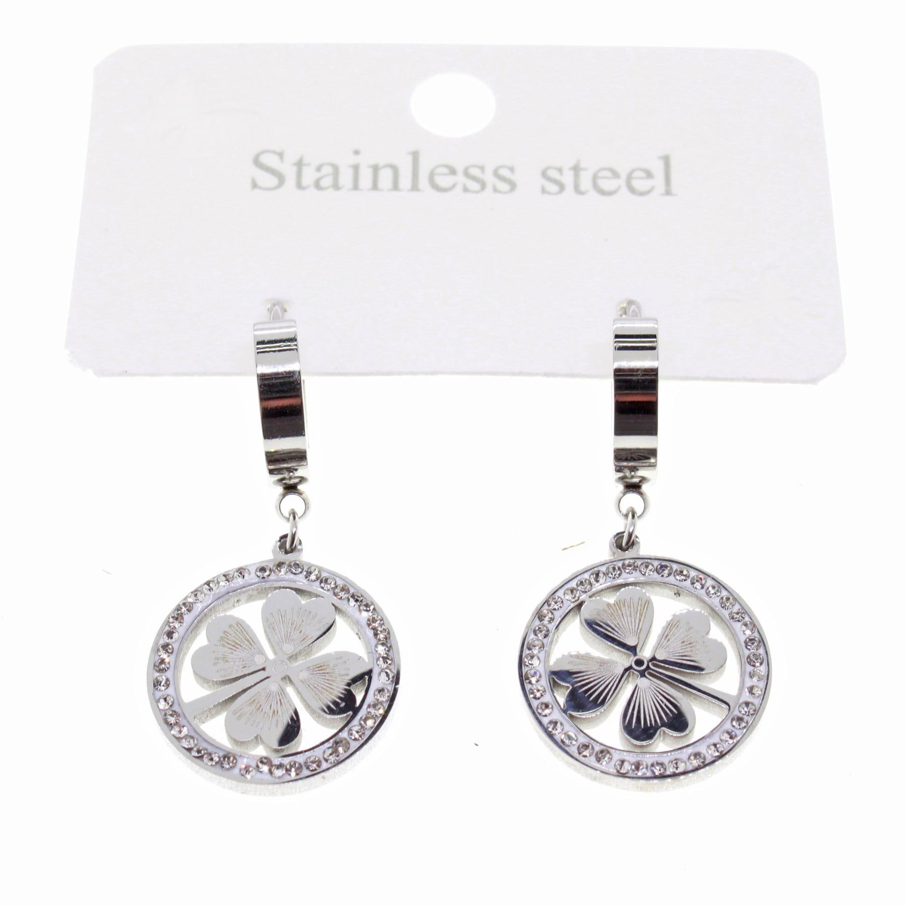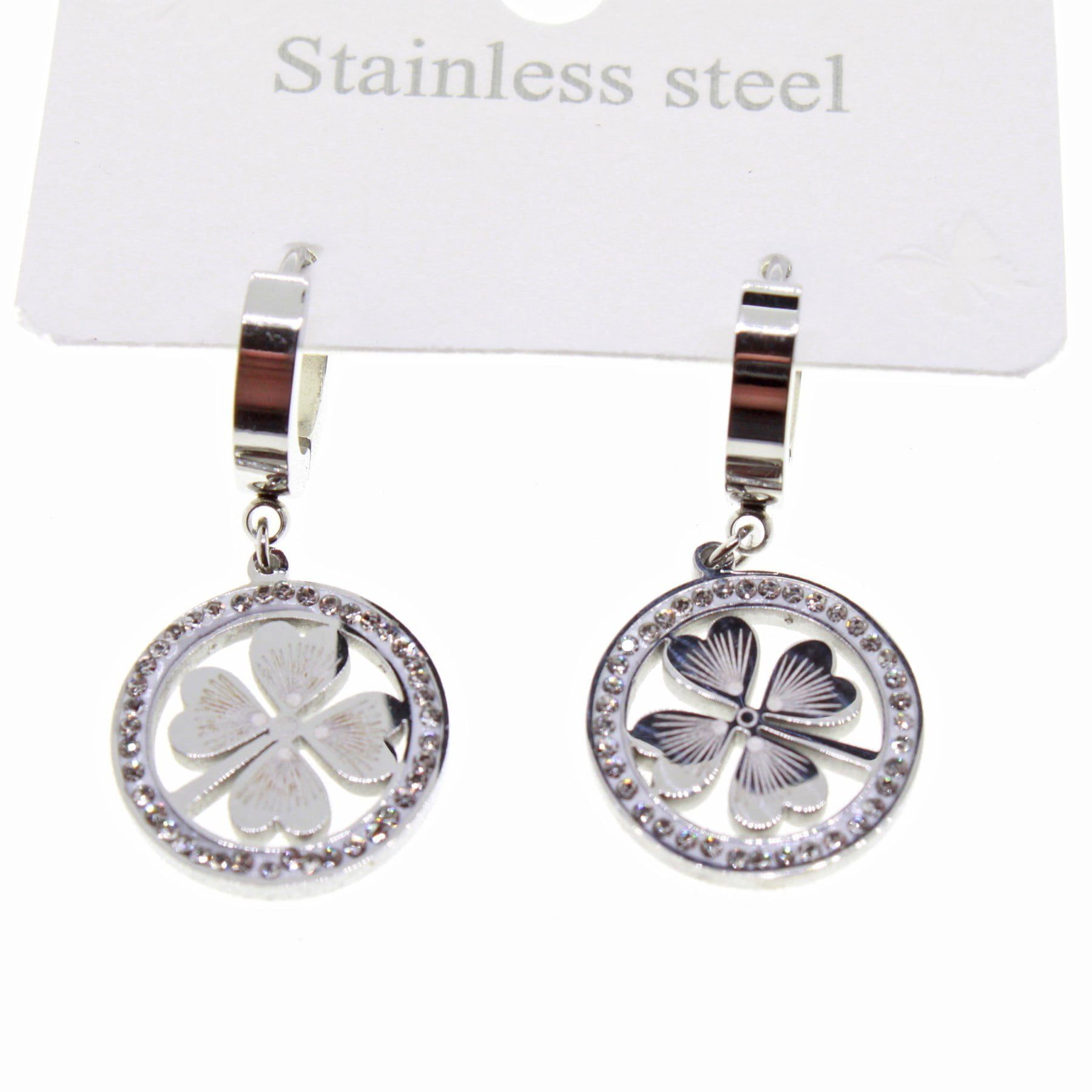 Toptan Altın Renk Taşlı Yonca Sallantılı Çelik Küpe – 1594