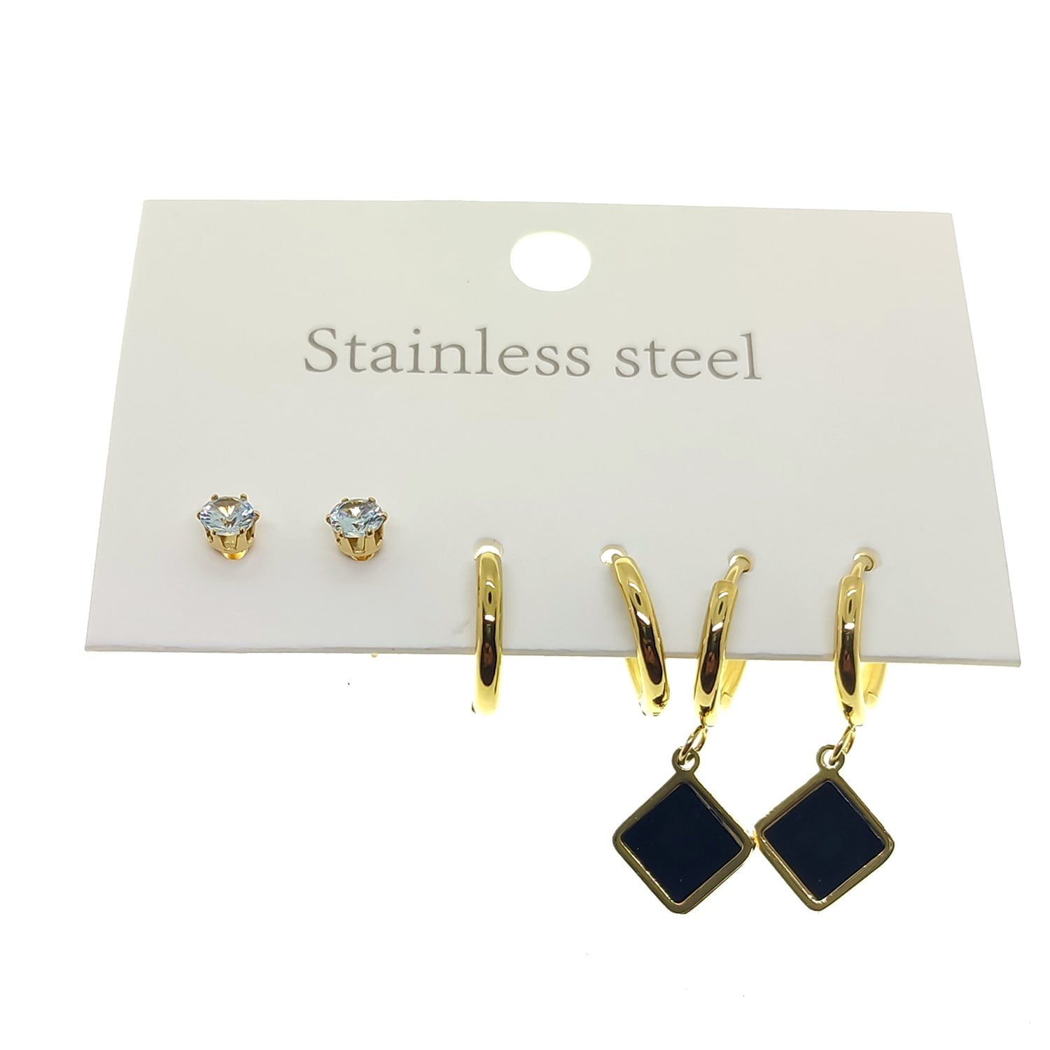 Toptan Altın Renk Tek Taş Halka Sallantılı Siyah Kare Çelik Küpe – 2586