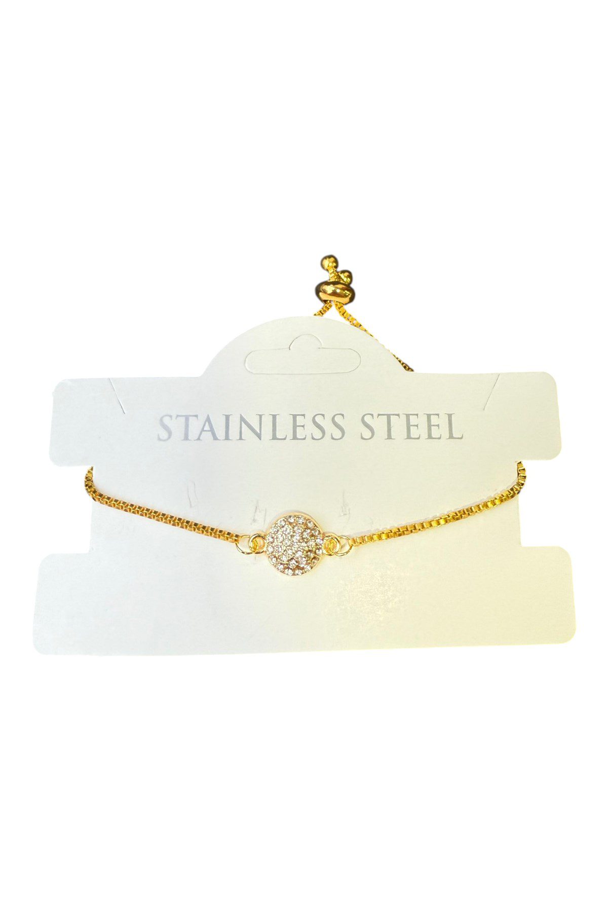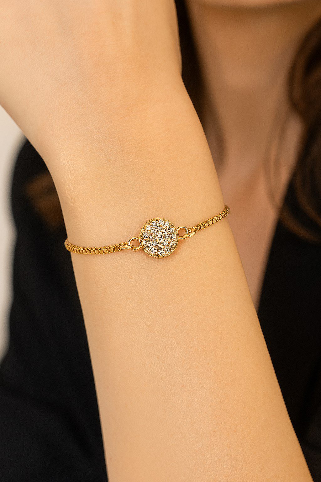 Toptan Altın Renk Tombul Yuvarlak Beyaz Taş Asansör Çelik Bileklik – 3600
