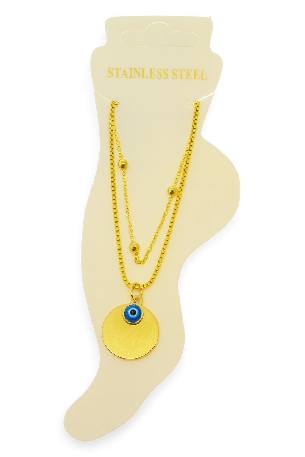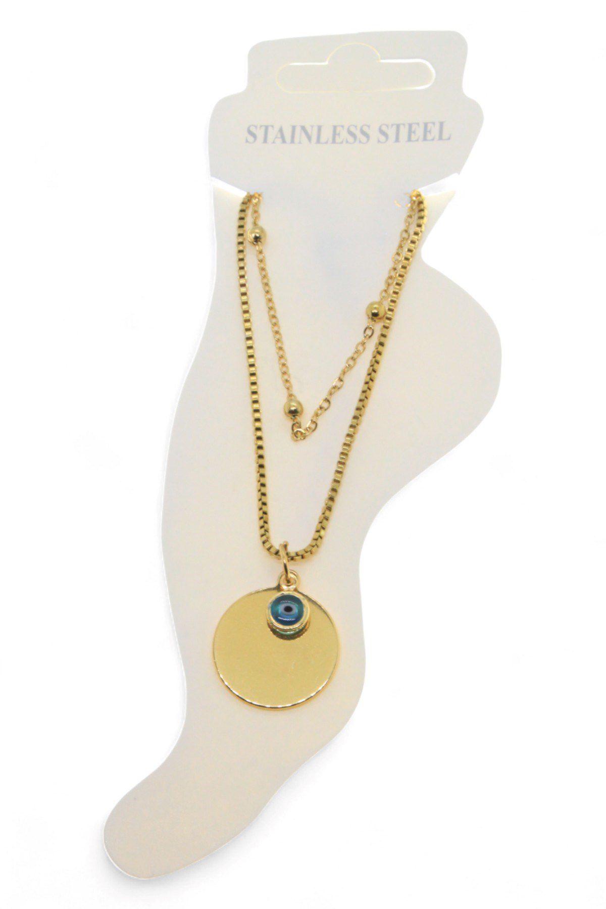 Toptan Altın Renk Top Asansör Büyük Pul Nazar Göz Çelik Halhal – 3480