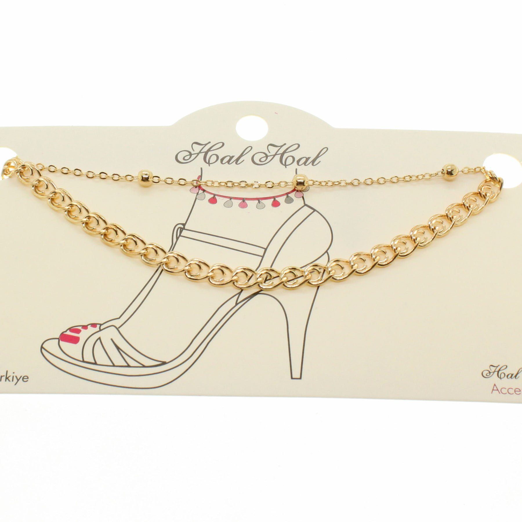 Toptan Altın Renk Top Ve Eski Tilki Zincir Halhal – 1908